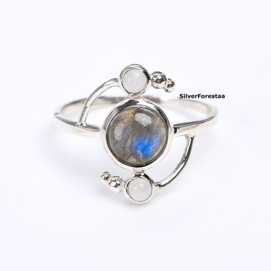 Mystic Glow – Labradorite & Moonstone Ring in 925 Sterling Silver