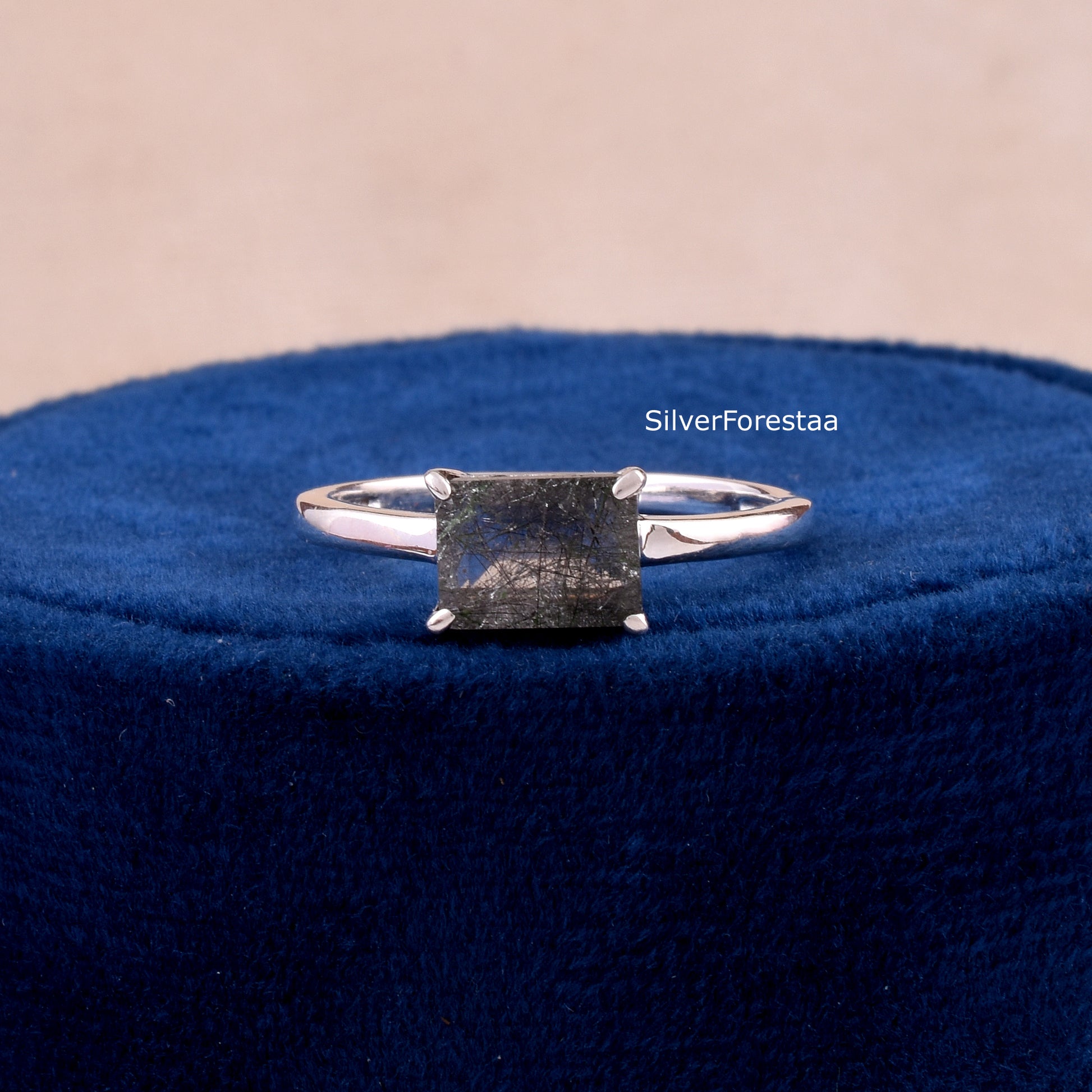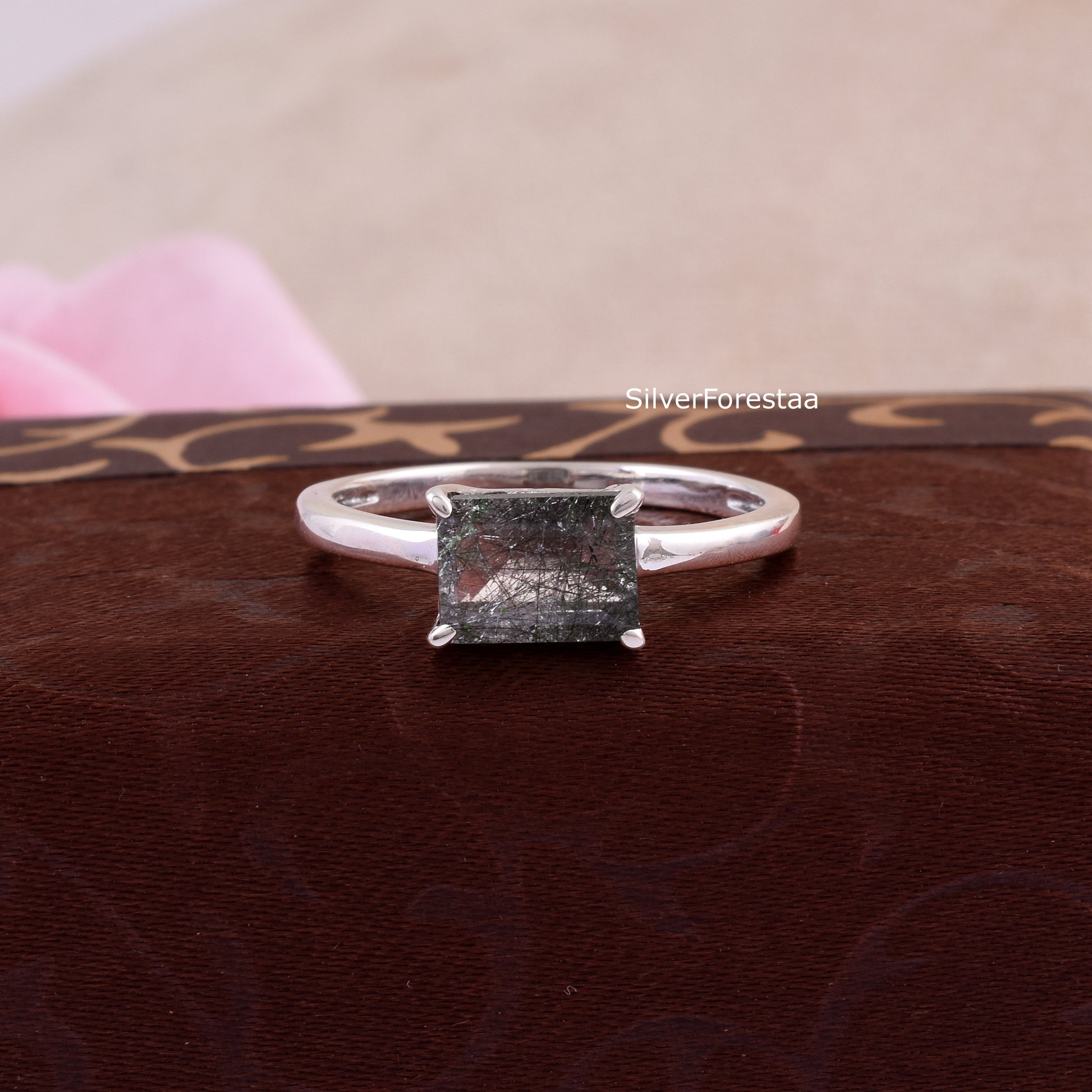 925 Silver Black Rutile Ring – Unique Valentine Gift