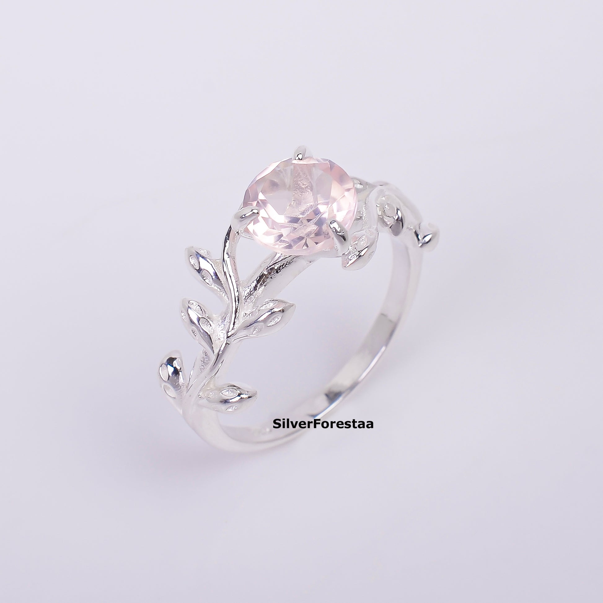 925 Silver Rose Quartz Leaf Twig Engagement Ring