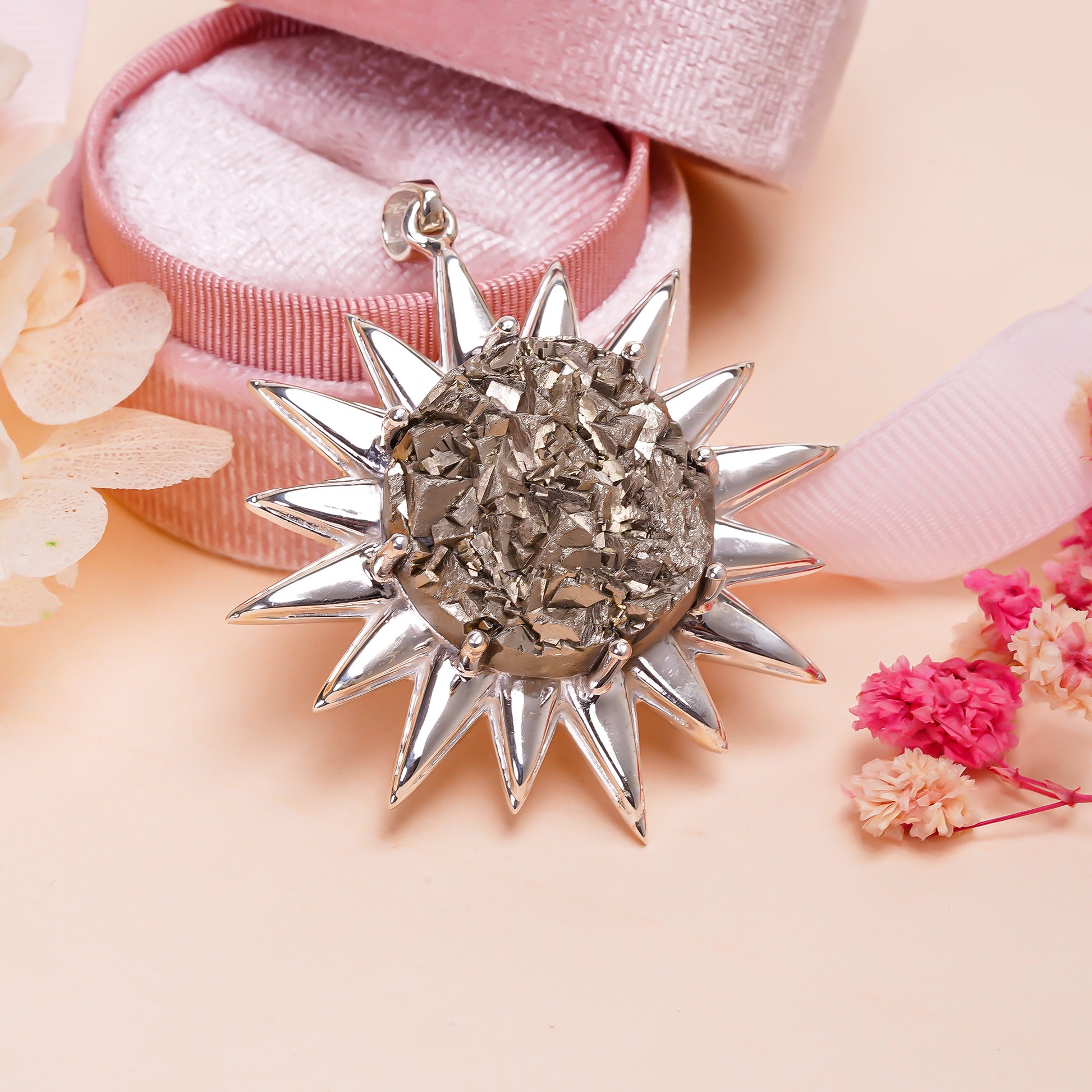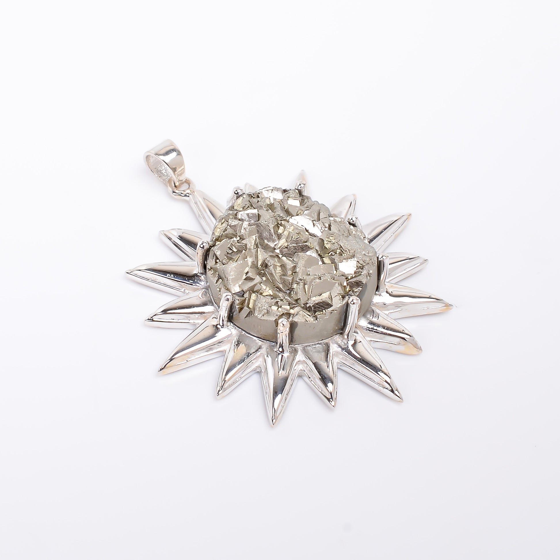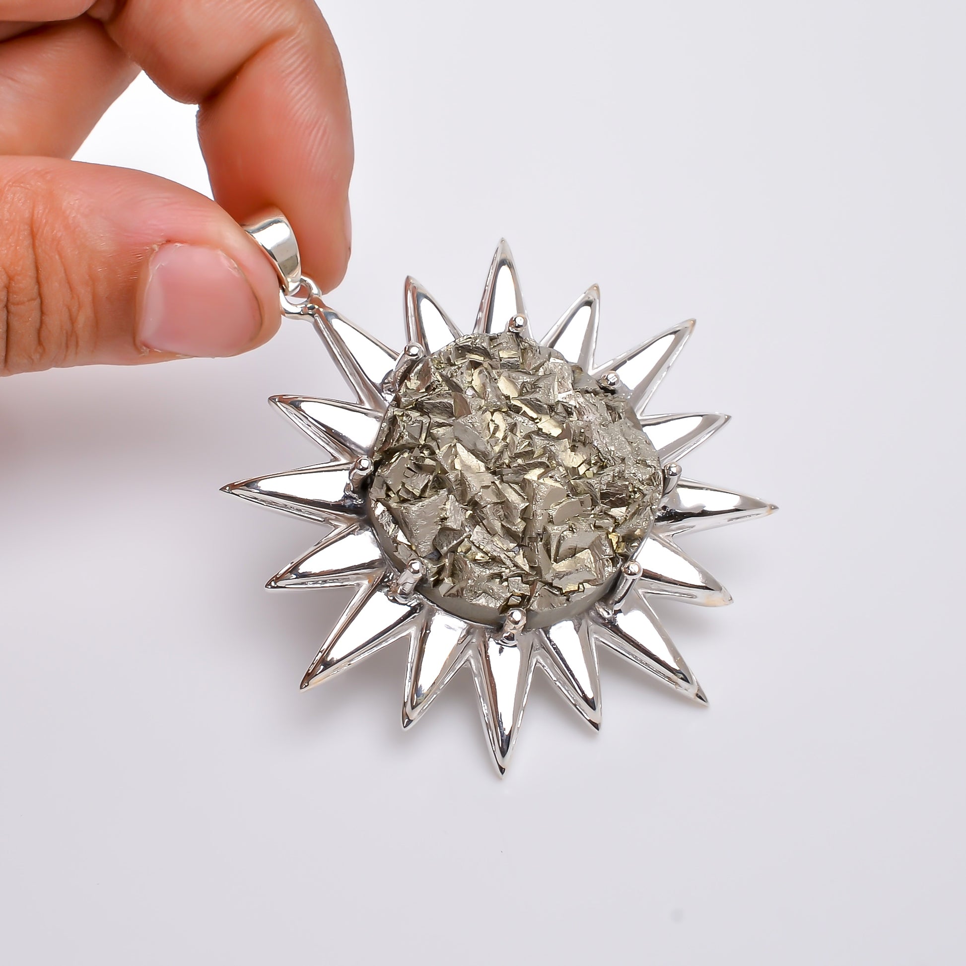 925 Sterling Silver Raw Rough Iron Pyrite Necklace - SilverForestaa
