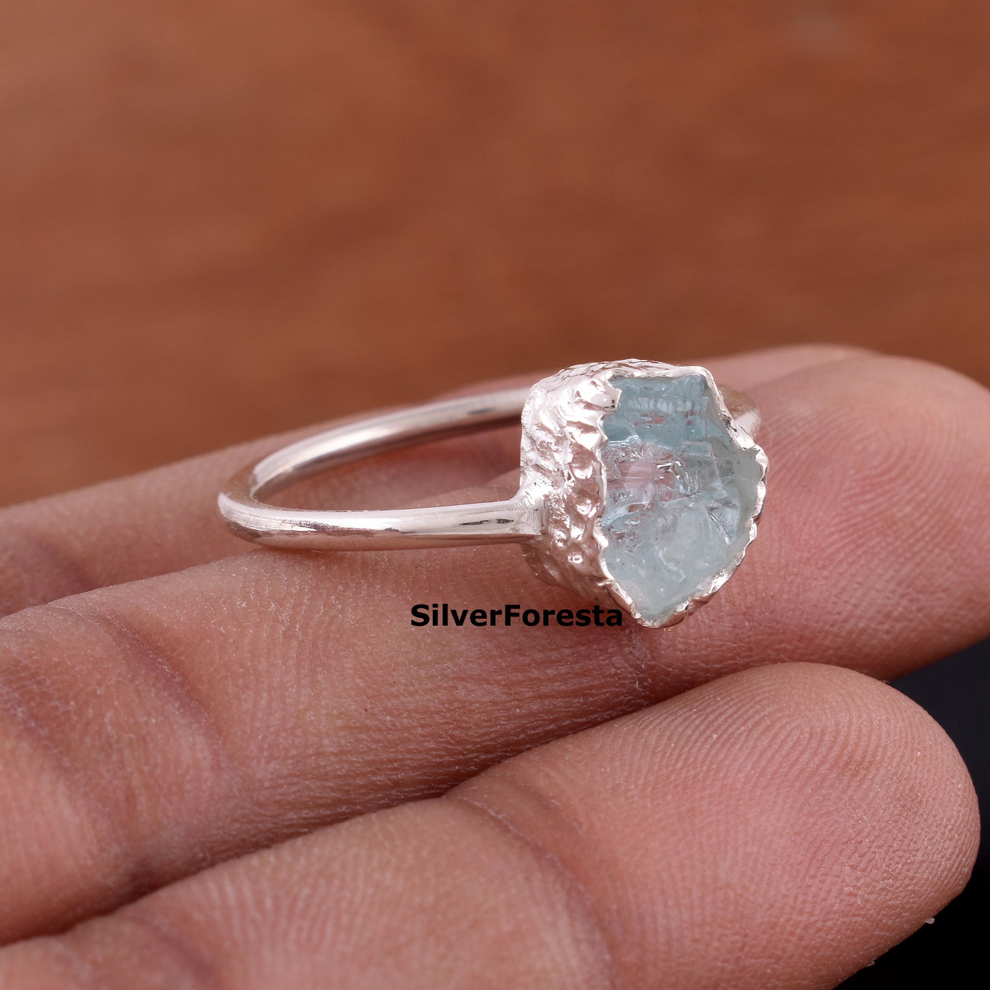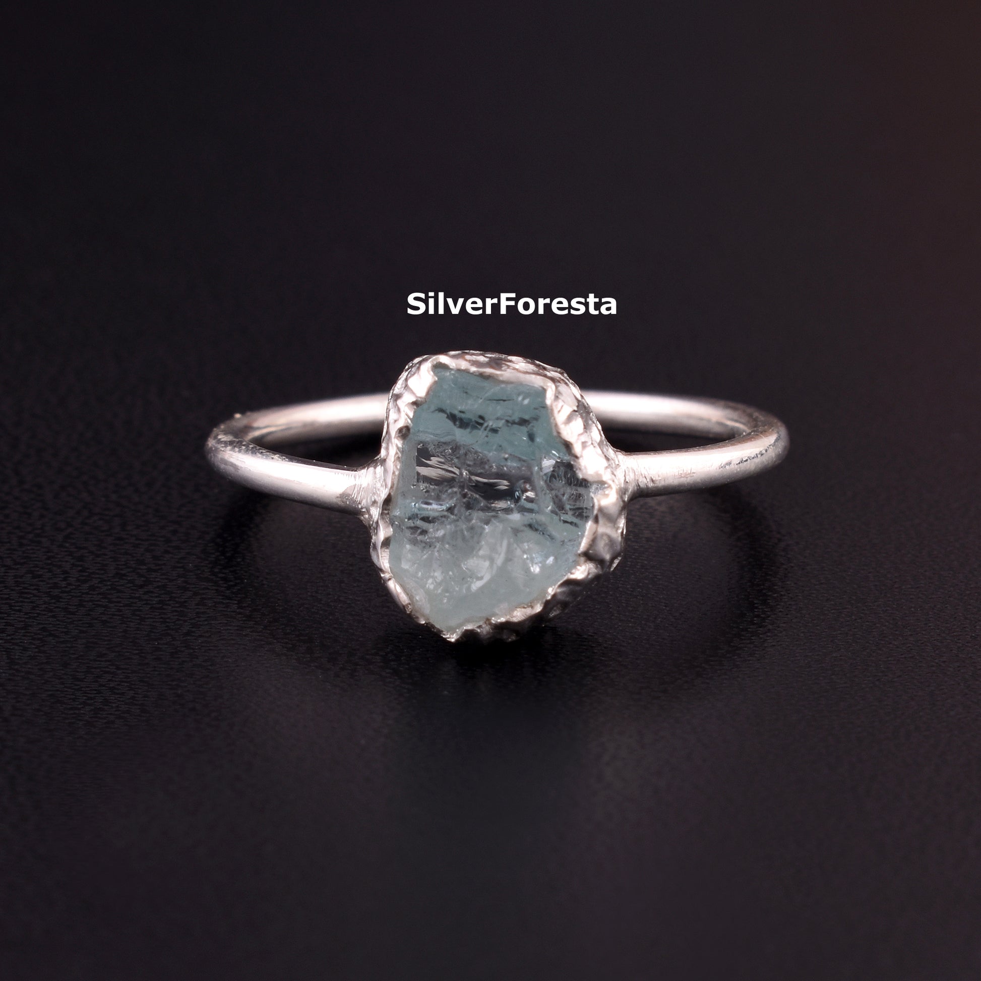 Aquamarine Ring, Raw Aquamarine Ring, Sterling Silver Ring, March Birthstone, Dainty Ring, Handmade Ring, Aquamarine Jewelry, Womens Ring.
