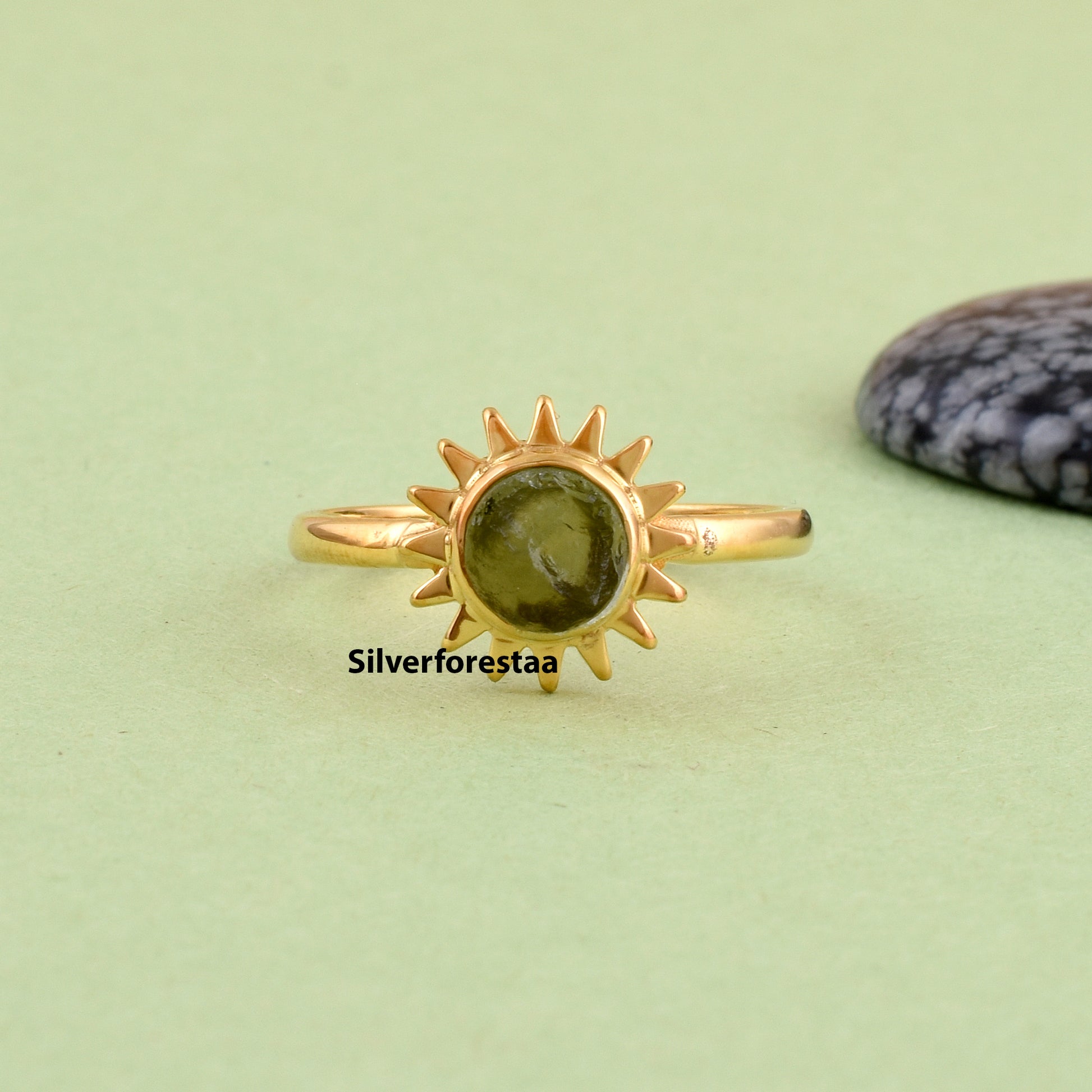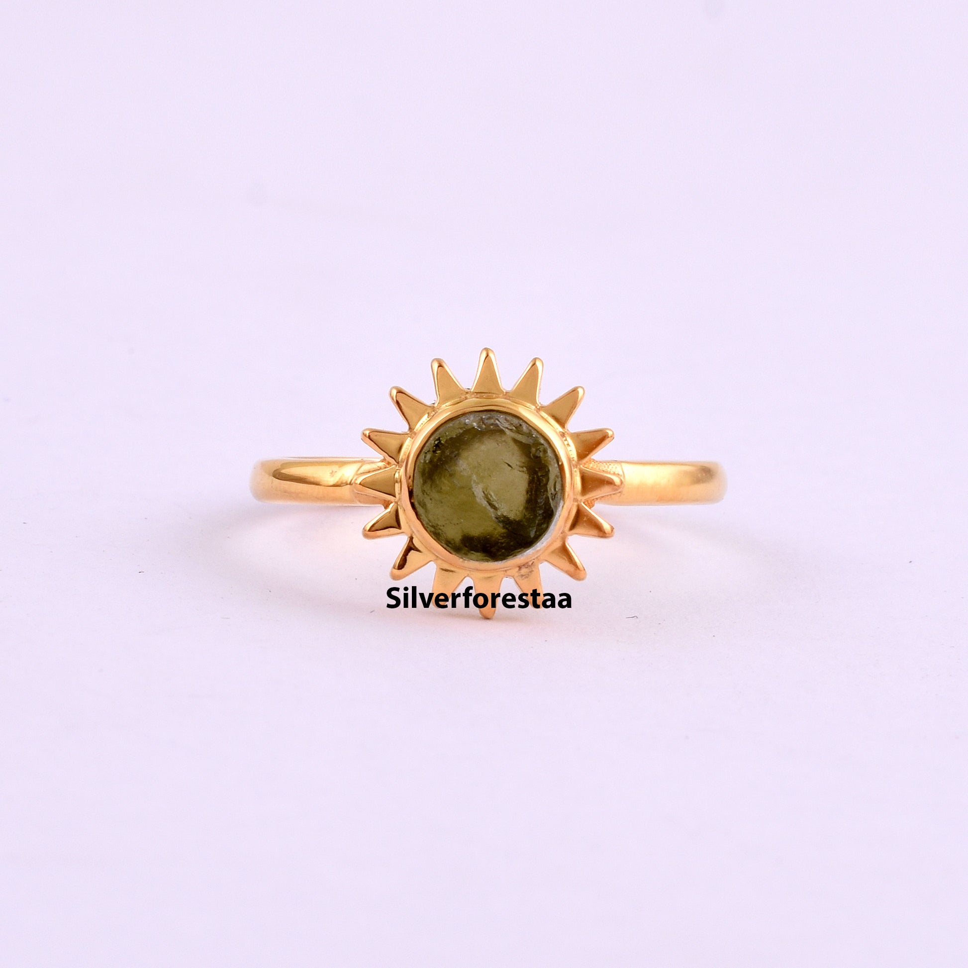 Sunburst Moldavite Gemstone Ring Authentic Raw Moldavite Ring 925 Sterling Silver Ring Moldavite Transformation Ring Healing Crystal Rings