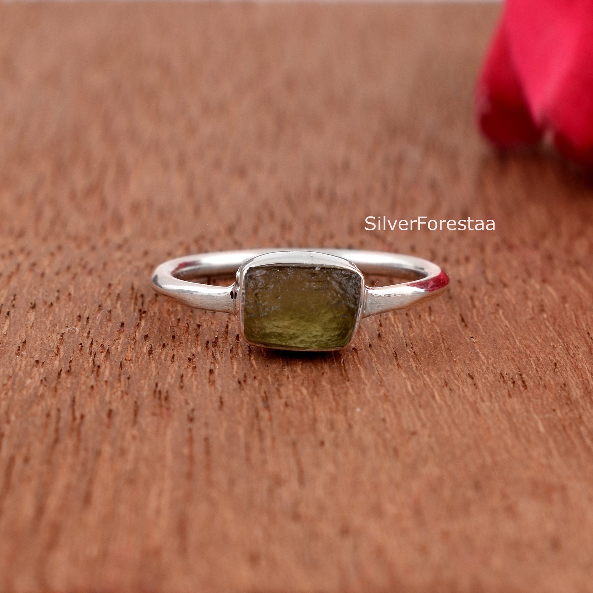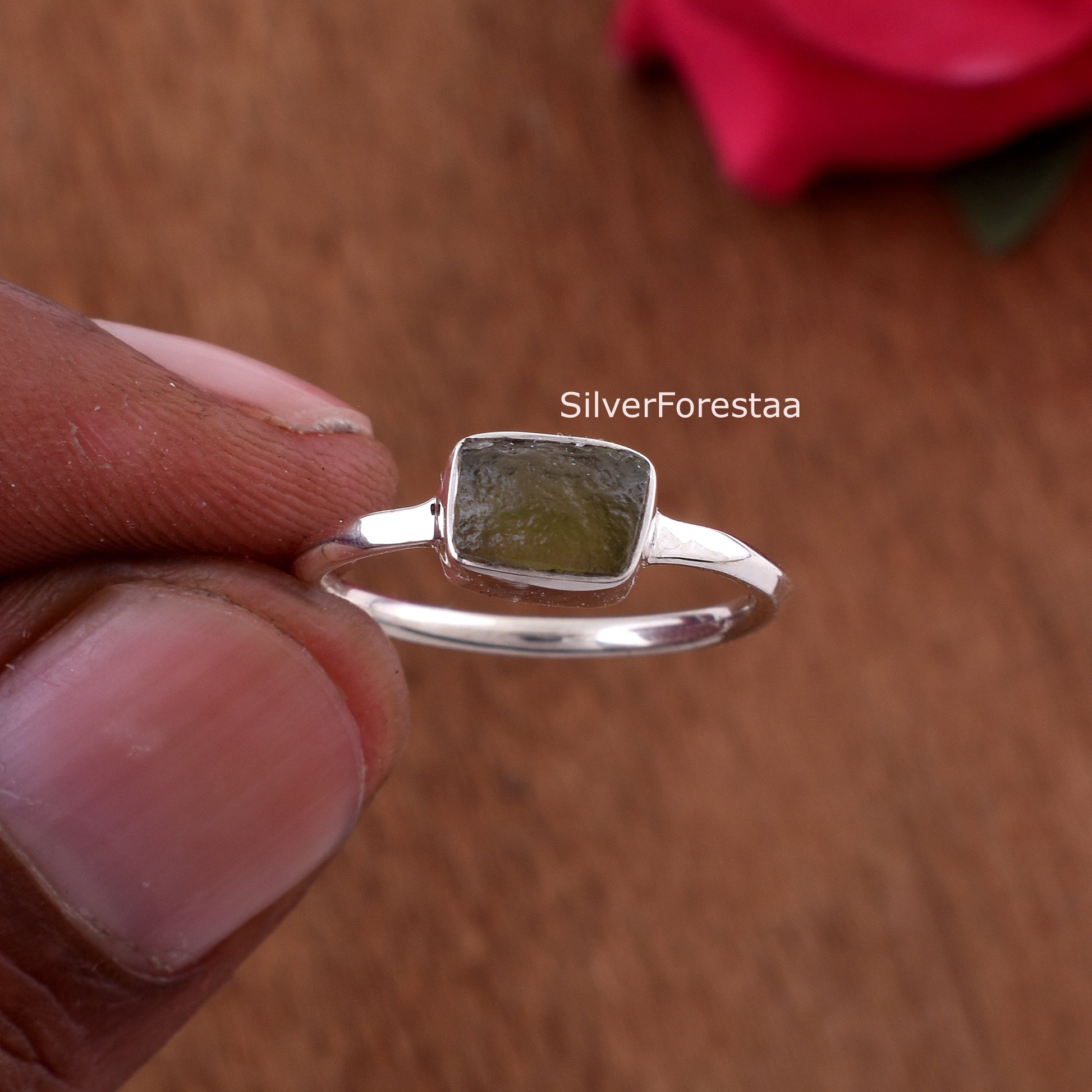 Natural Moldavite Silver Ring Rough Moldavite Ring Healing Moldavite Mateorite Ring Genuine Czech Republic Moldavite Ring Raw Moldavite Ring