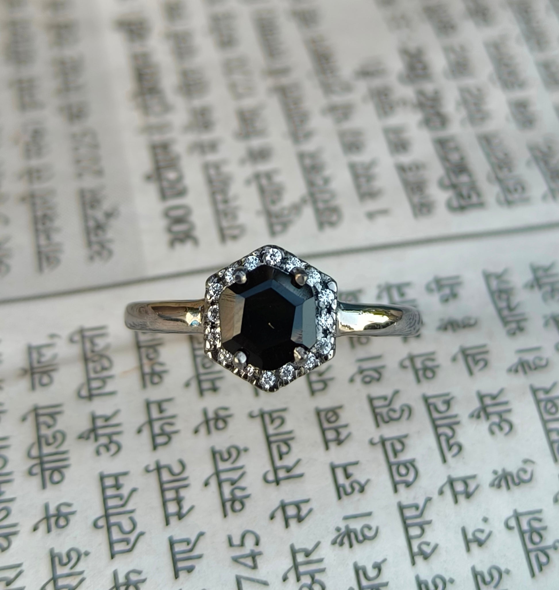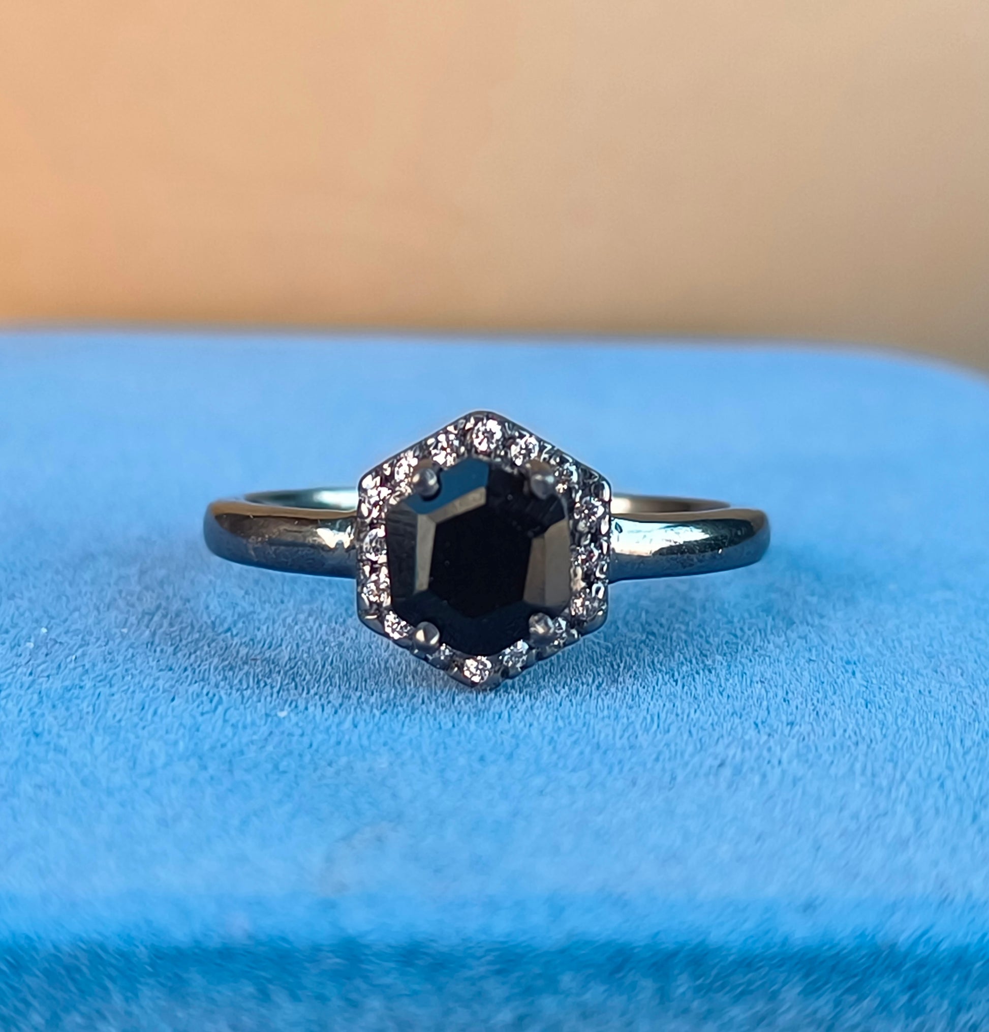 Natural Black Onyx Ring - Hexagon Engagement Ring for Women - Handmade Dainty Ring - Onyx Anniversary Gifts - 925 Sterling Silver Rings.