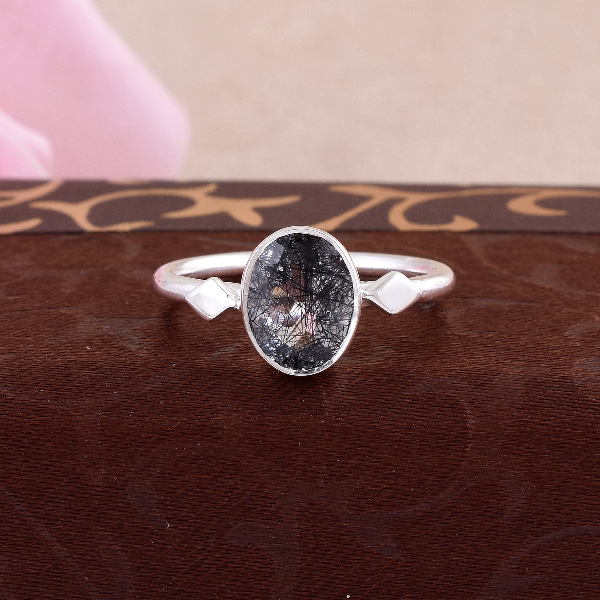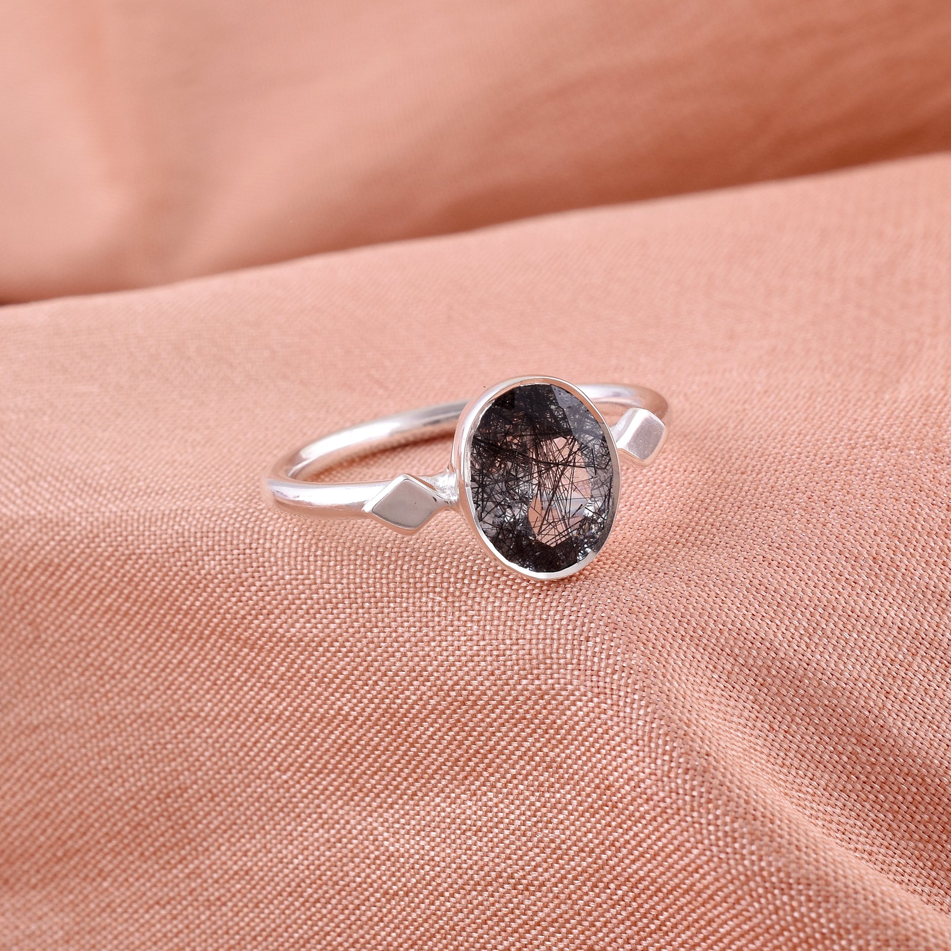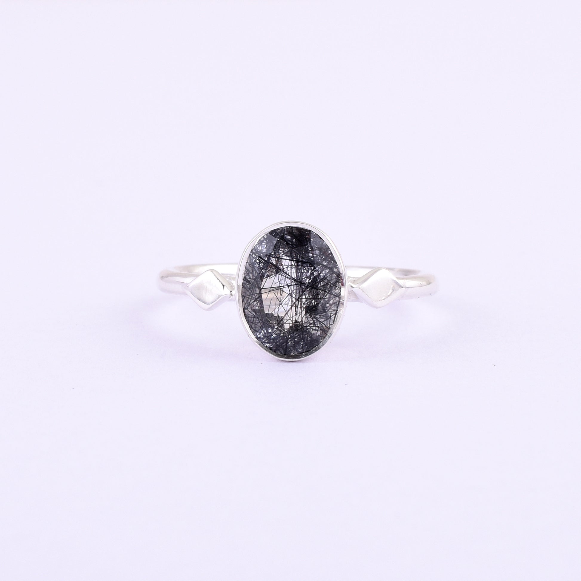 Black Rutile Gemstone Ring Handmade Silver Jewelry - SilverForestaa