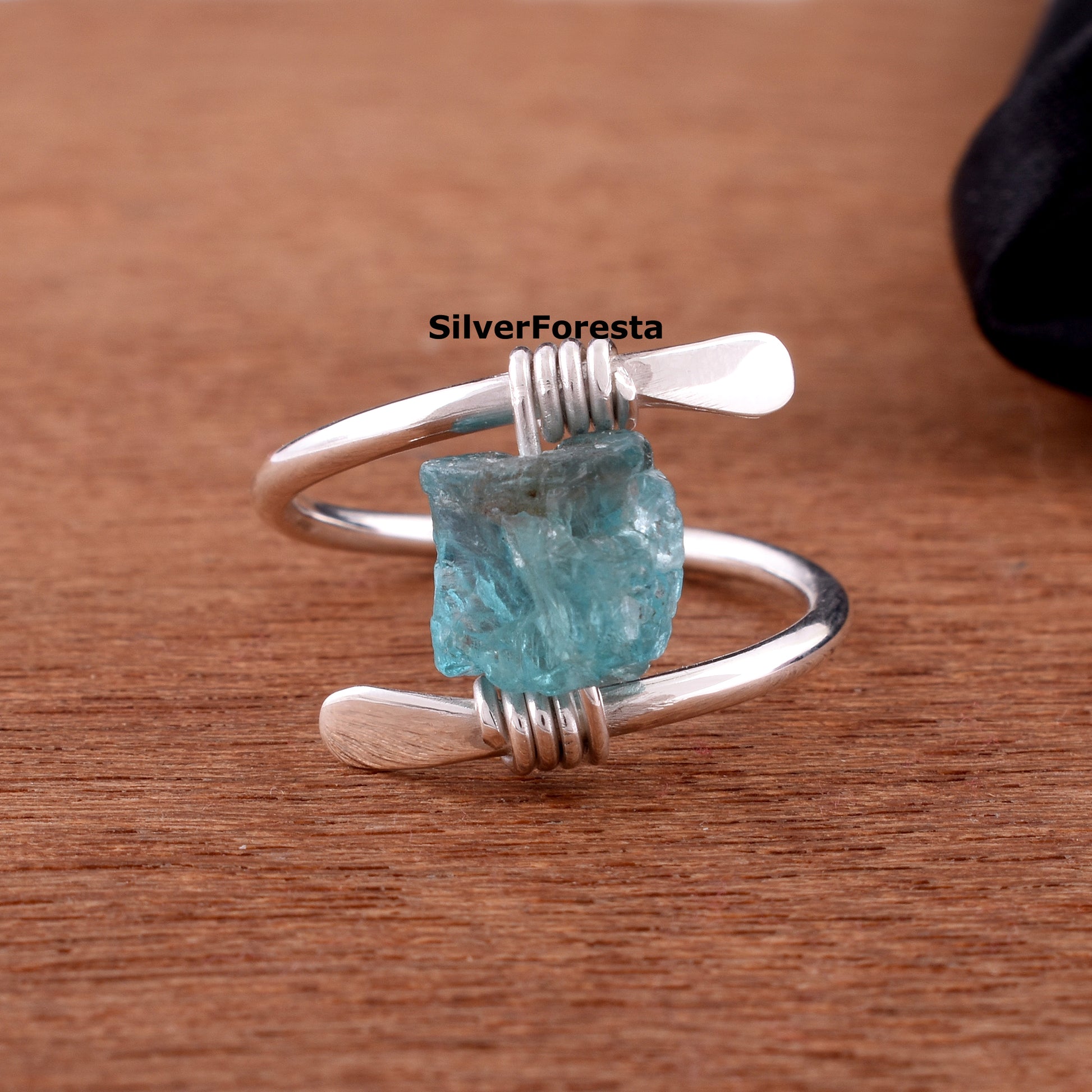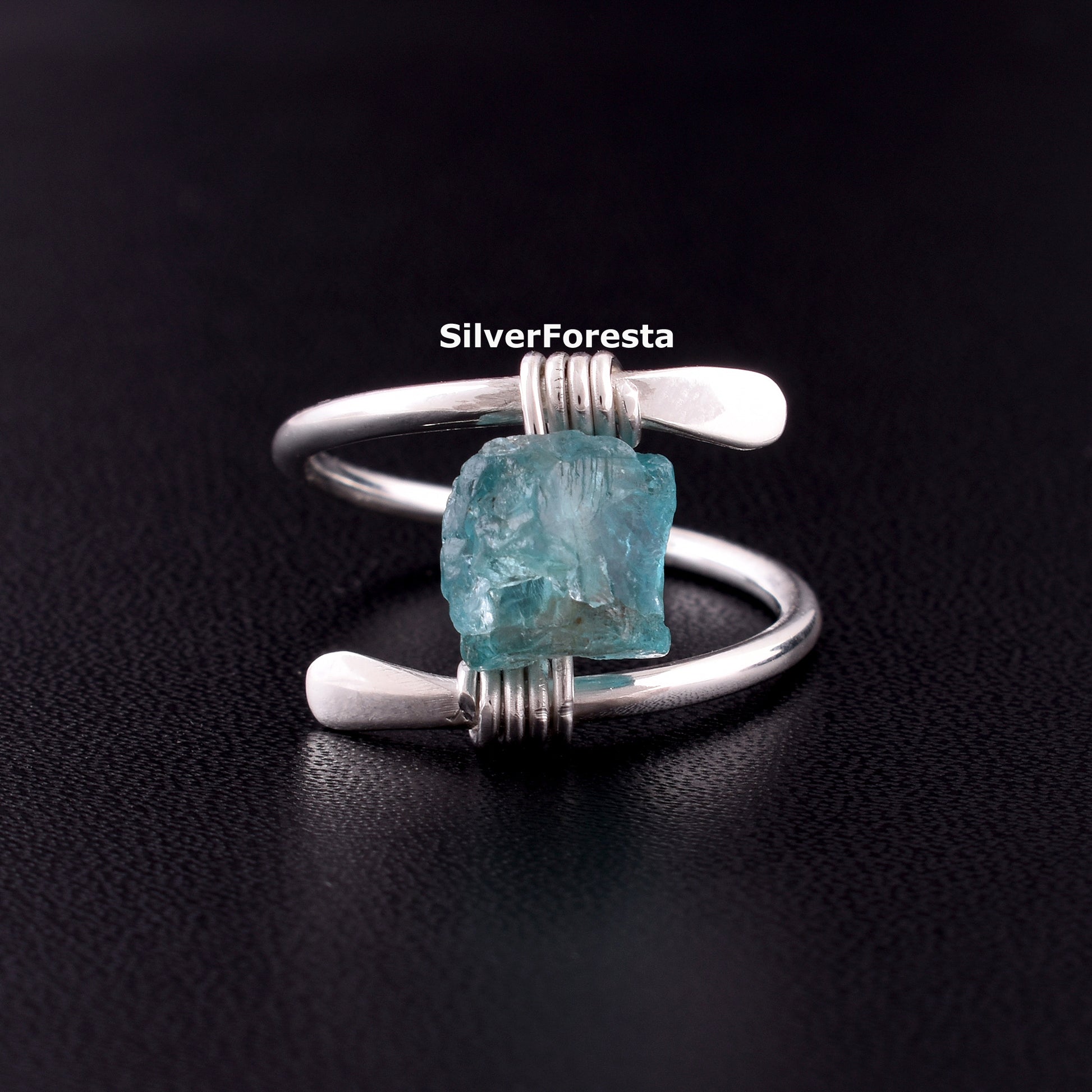 Rough Apatite Gemstone Ring, 925 Silver Ring, Anxiety Ring, Raw Apatite Silver Ring, Handmade Ring, Apatite Jewelry, Fidget Silver Rings.