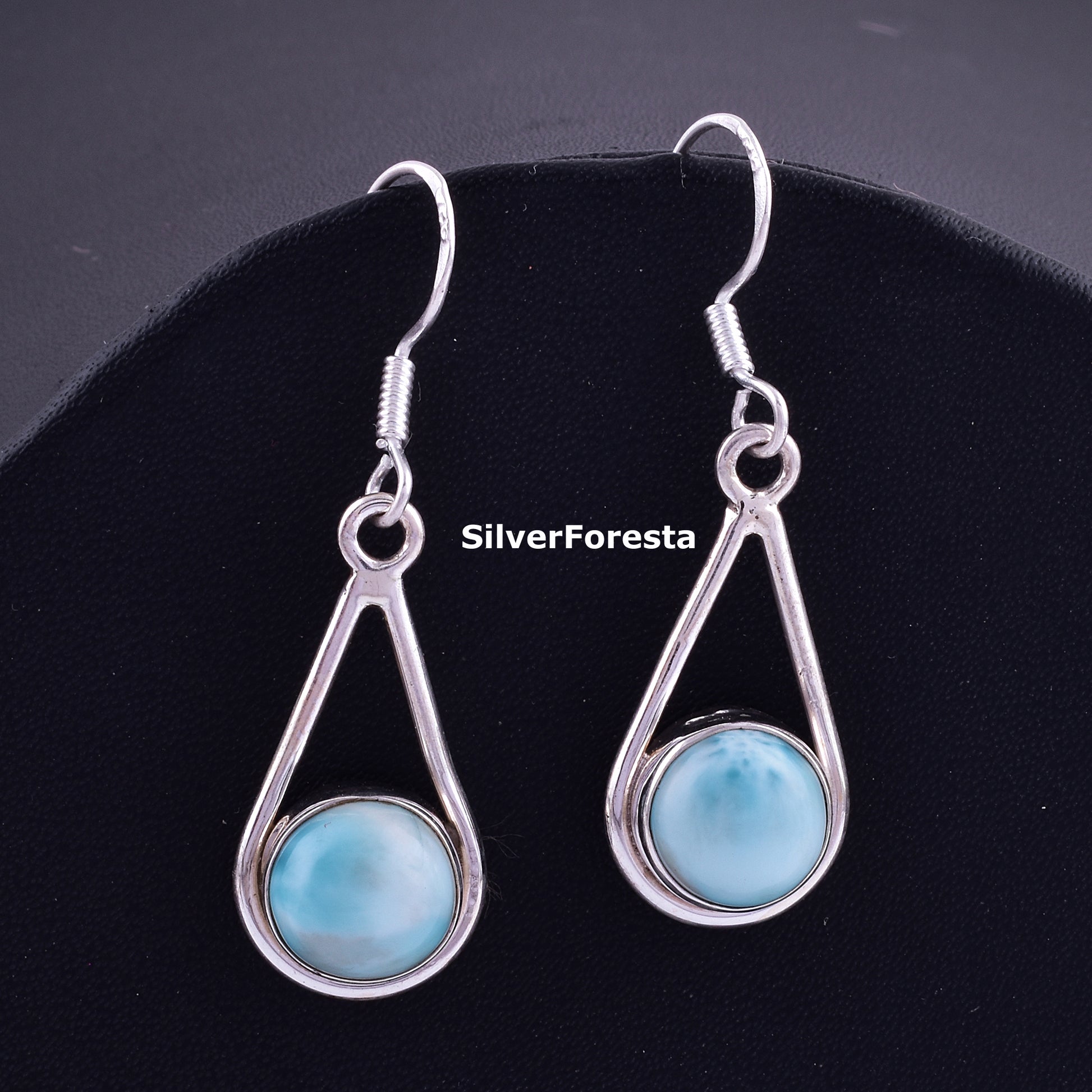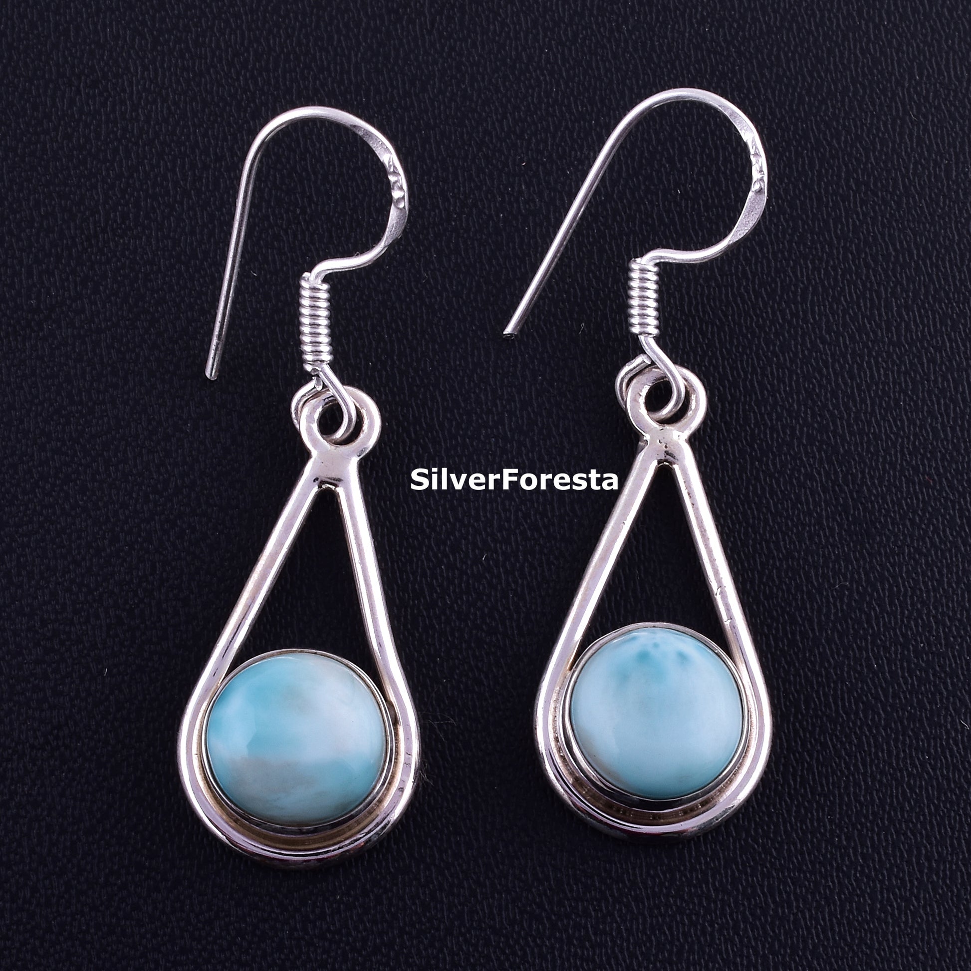 Natural Larimar Silver Earring, Sterling Silver Earring, Handmade Earring, Boho Earring, Statement Earring, Larimar Jewelry, Christmas Sale.
