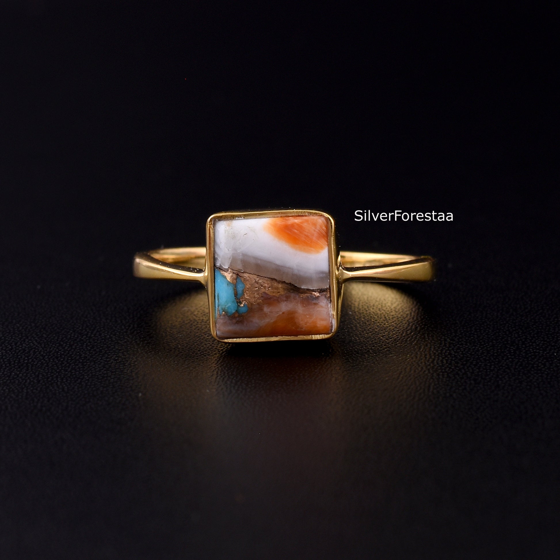 Oyster Copper Turquoise Ring, Solid 925 Sterling Silver Ring, Everyday Ring, Anniversary Gift, Dahlia Ring, December Birthstone Jewelry.