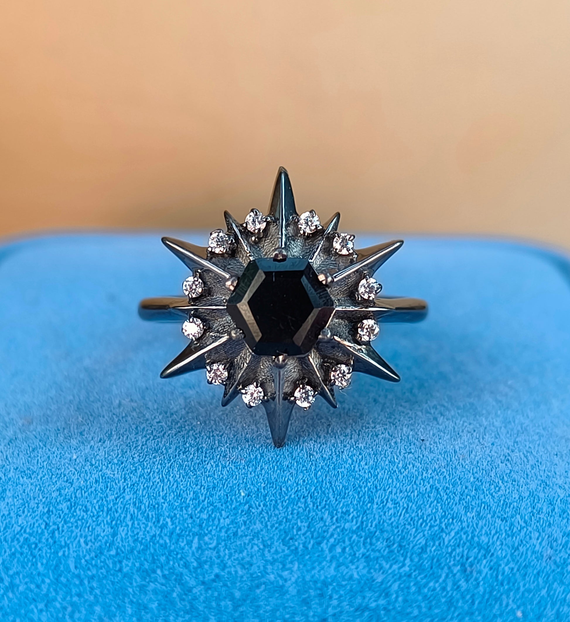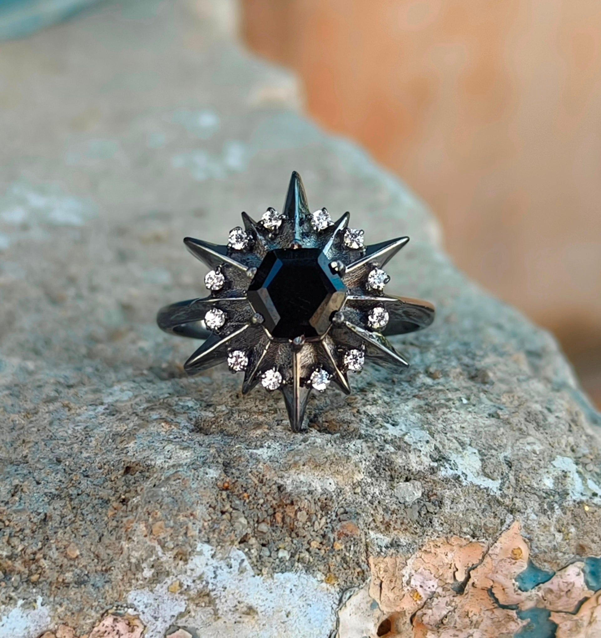 Black Onyx Crystal Ring - 925 Sterling Silver Jewelry - Engagement Ring - Boho Rings - Black Wedding Ring - Minimalist Ring - Bridal Ring