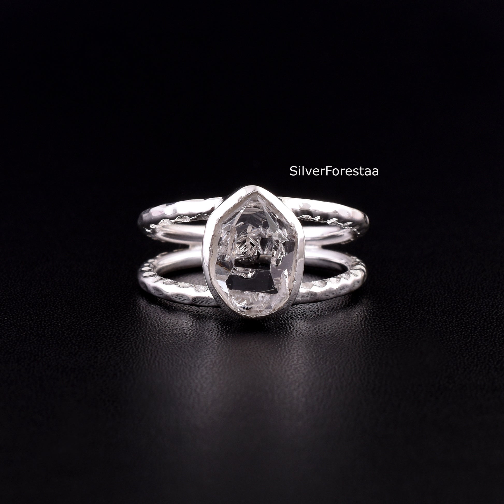 Dainty Herkimer Diamond Crystal Ring in 925 Silver