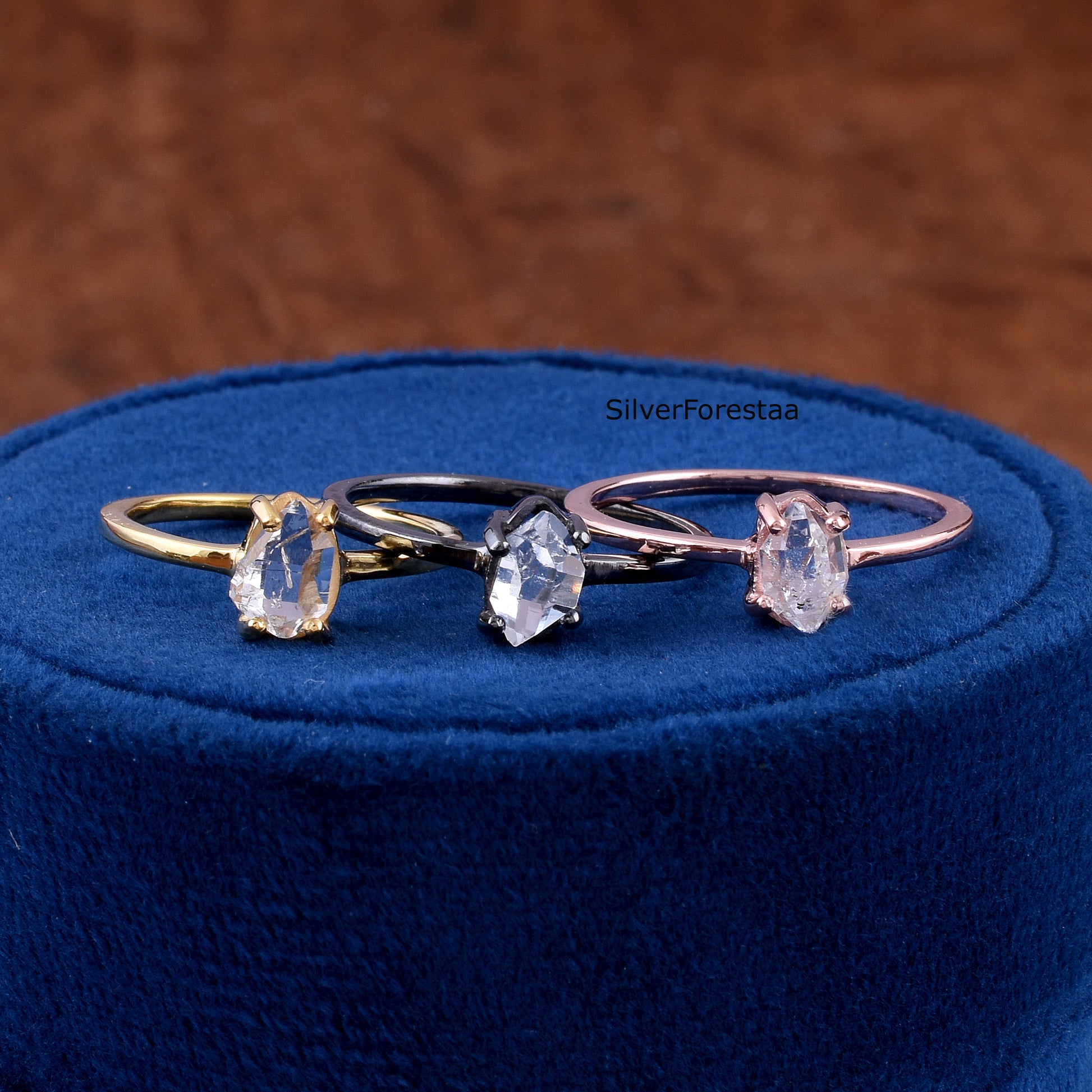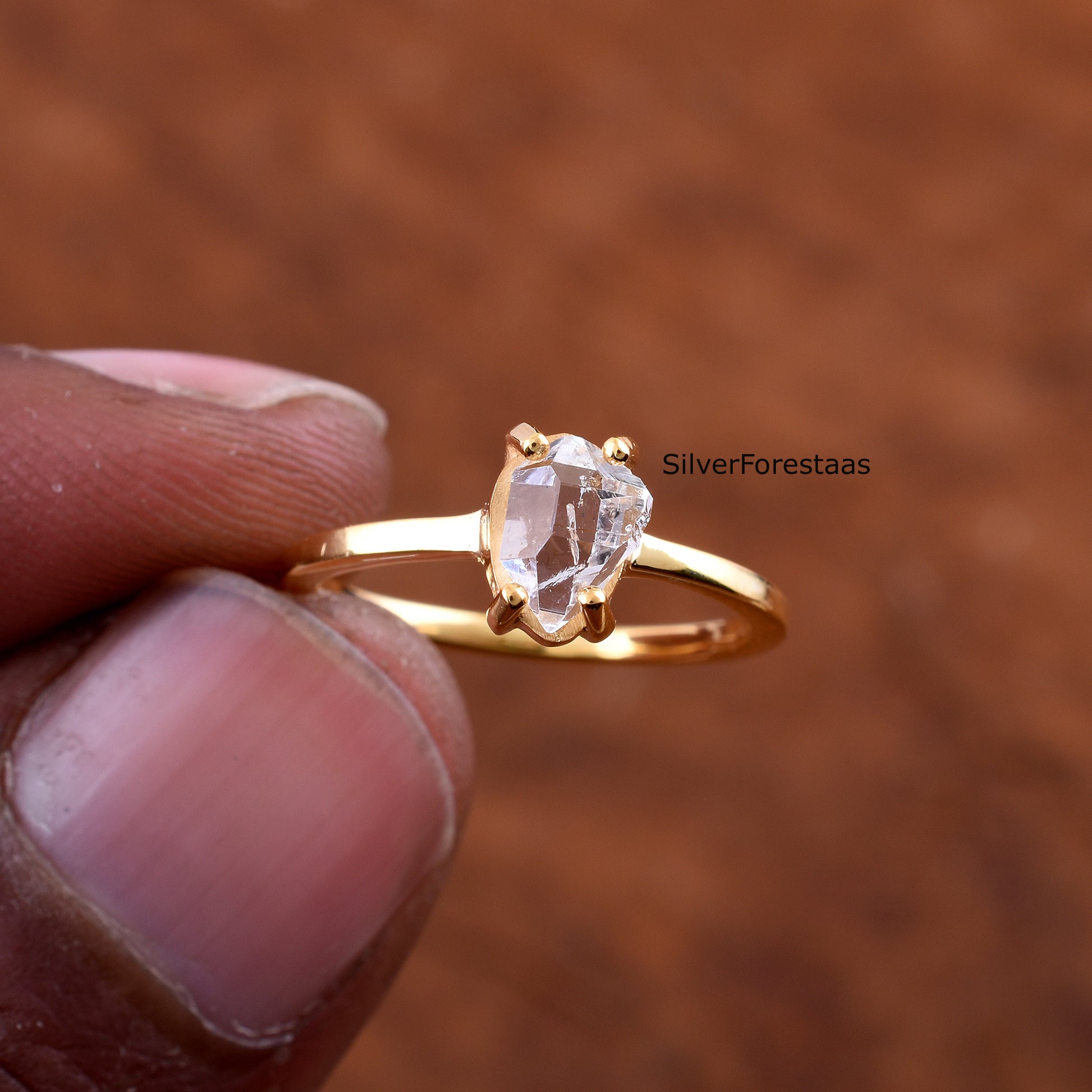Dainty Raw Herkimer Diamond Ring, Sterling Silver Ring, Herkimer Ring, Handmade Rings, Rough Herkimer Jewelry, Dainty Jewelry, Womens Ring.