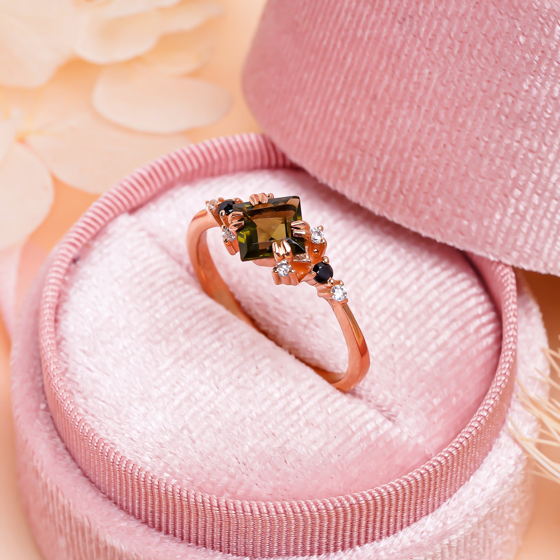 Natural Moldavite Silver Ring Faceted Moldavite Ring Healing Moldavite Mateorite Ring Genuine Czech Republic Moldavite Ring Cut Moldavite Ring