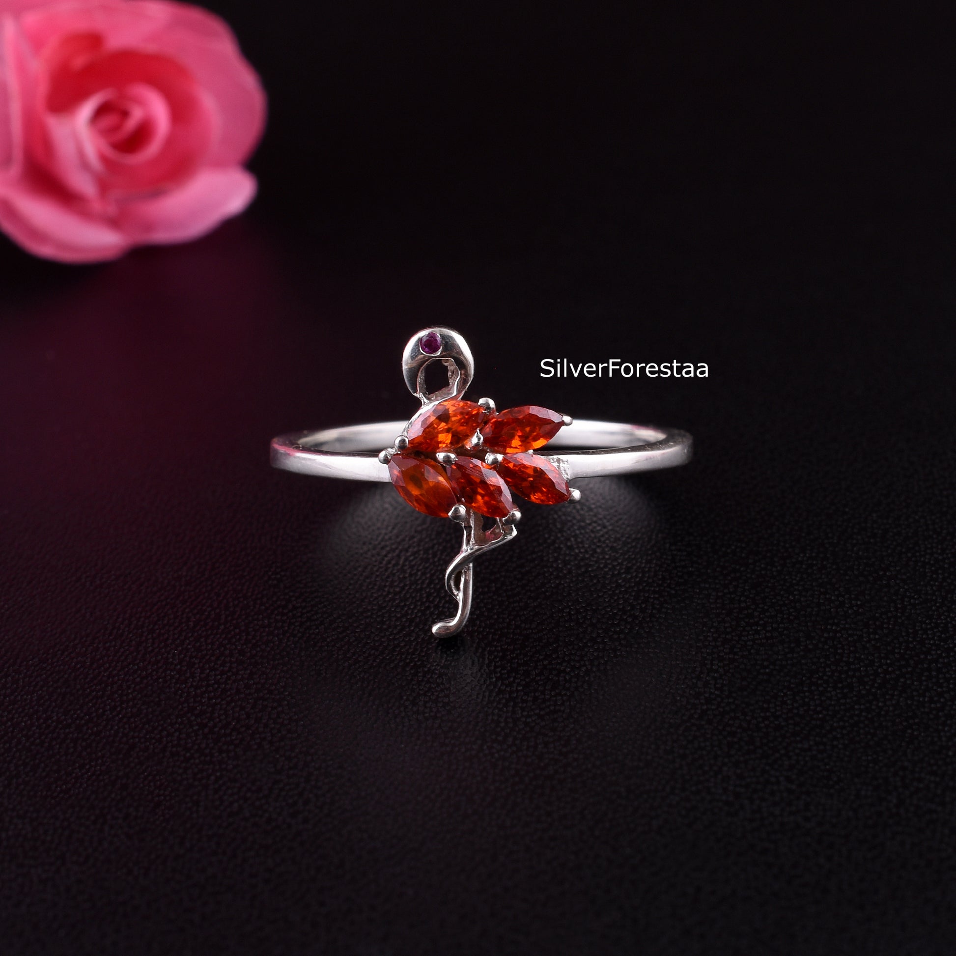 FLAMINGO RING!! Orange Zircon Ring, 925 Silver Ring, Flamingo Bird Ring, Zircon Ring, Gemstone Ring, Everyday Ring, Animal Lover Ring