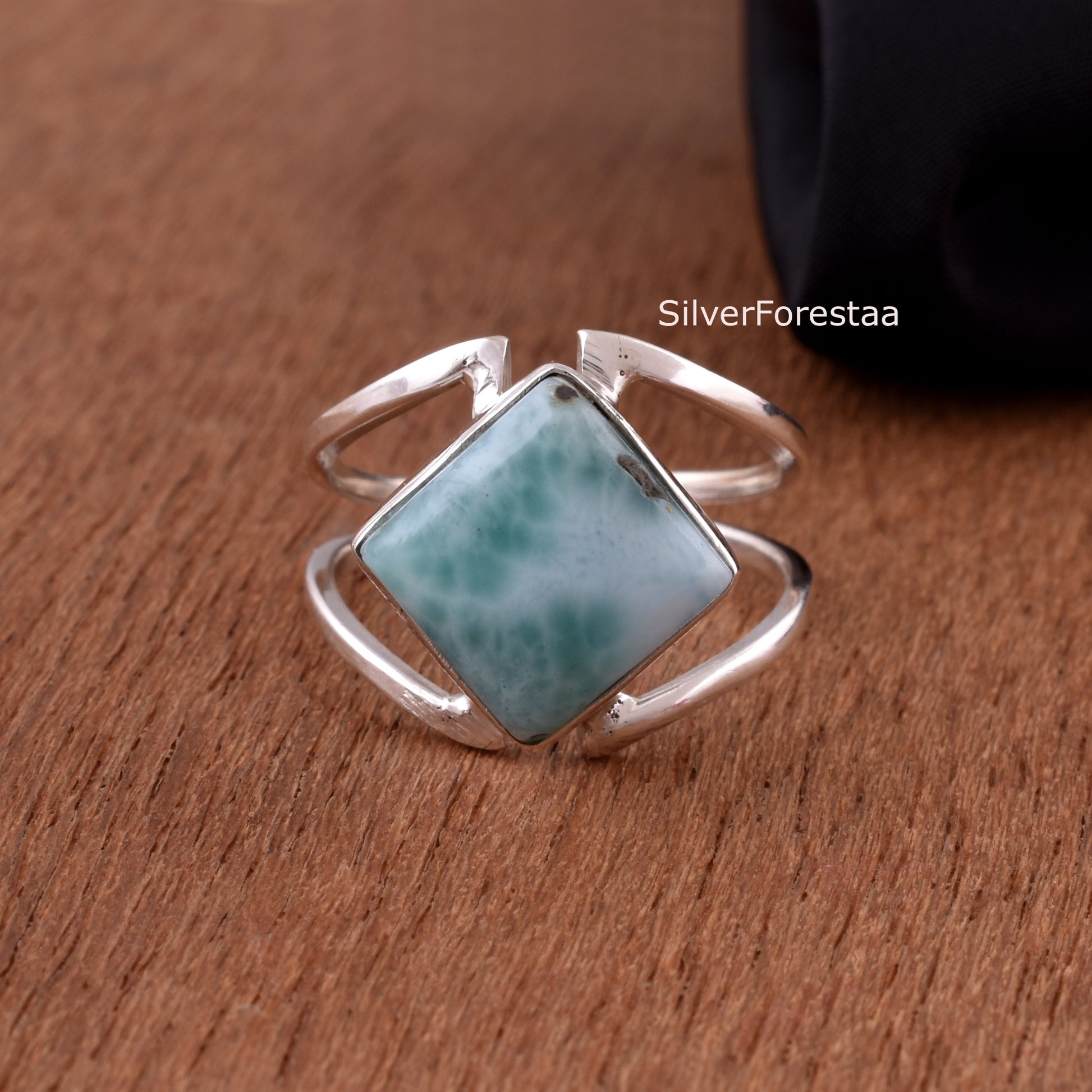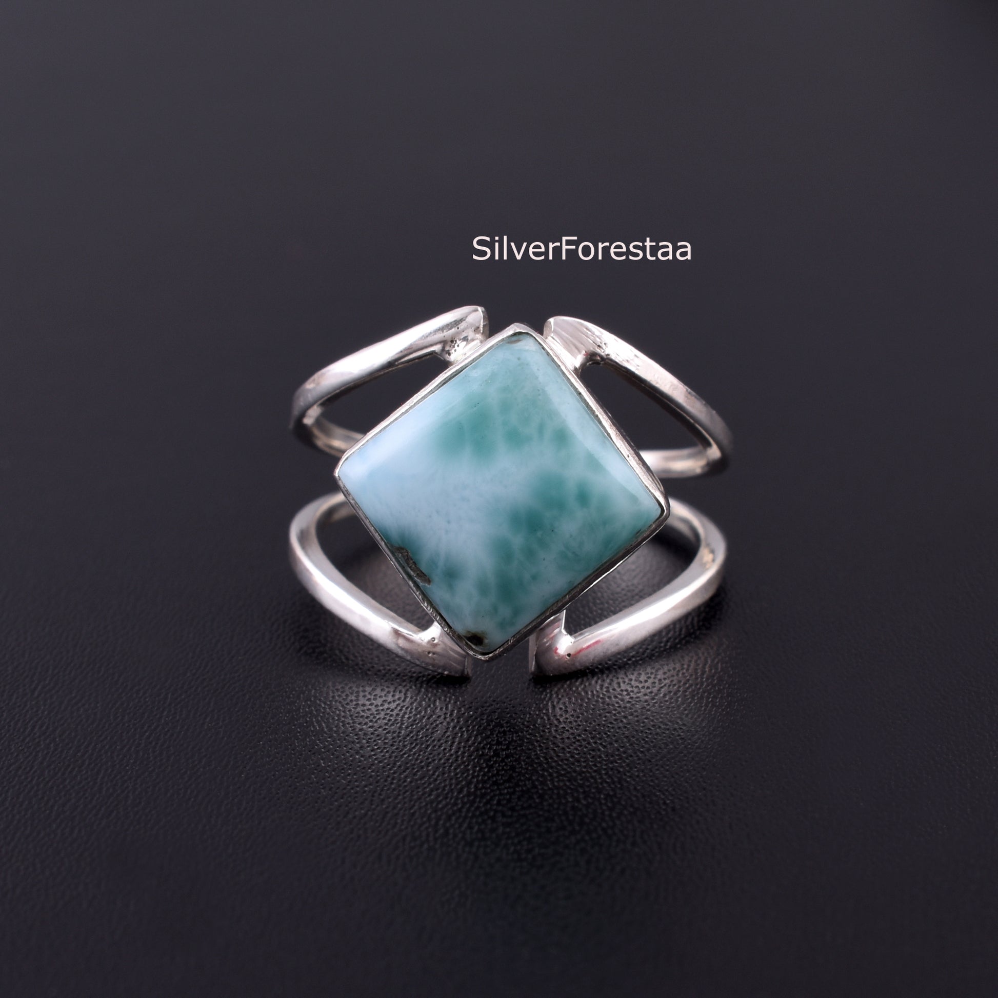 Larimar Ring, Meditation Ring, Gemstone Ring, Anxiety Ring, 925 Silver Ring, Handmade Ring, Larimar Jewelry, Bohemian Jewelry, Women Rings.