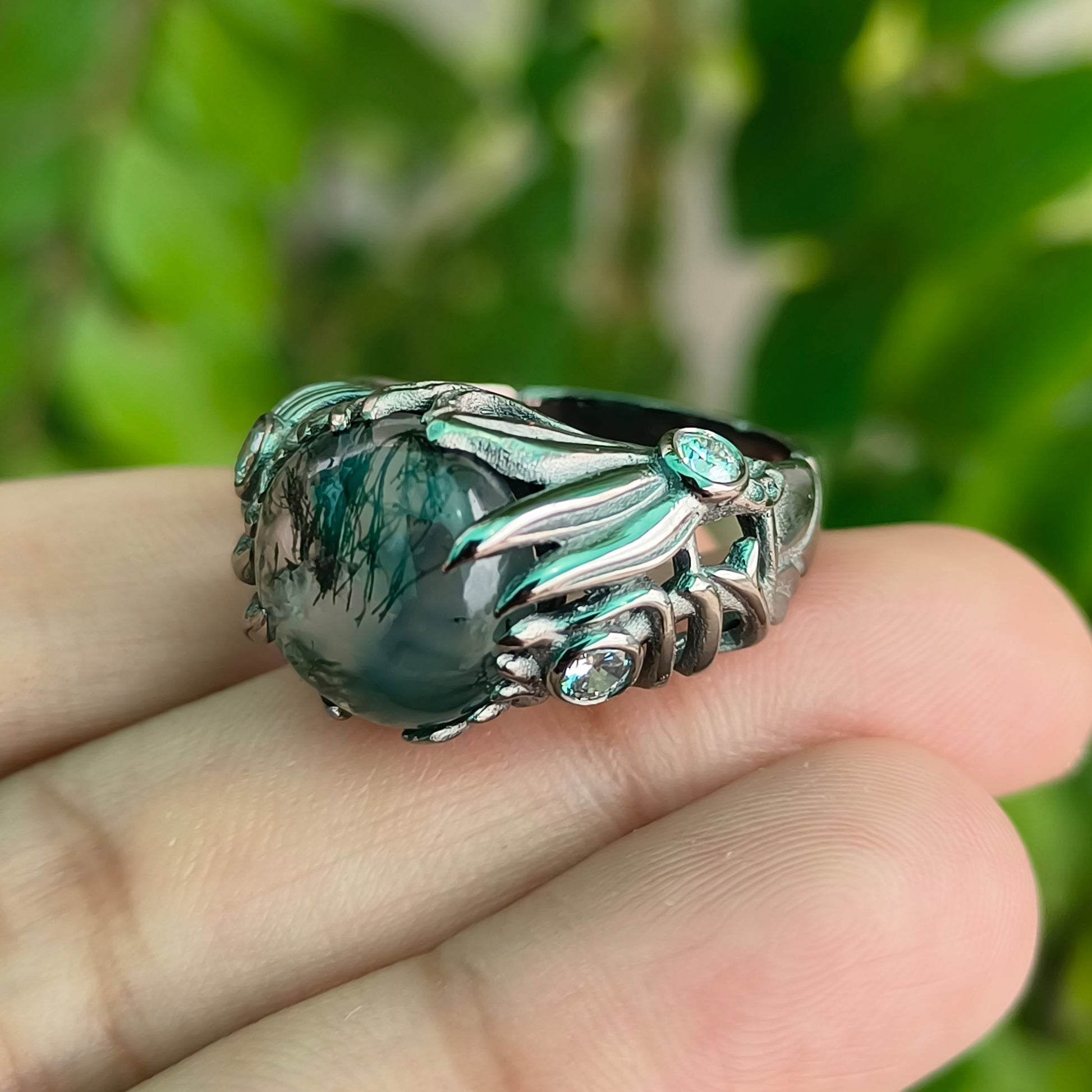 Handmade Moss Agate Ring | 925 Sterling Silver Boho Witchy Vibes