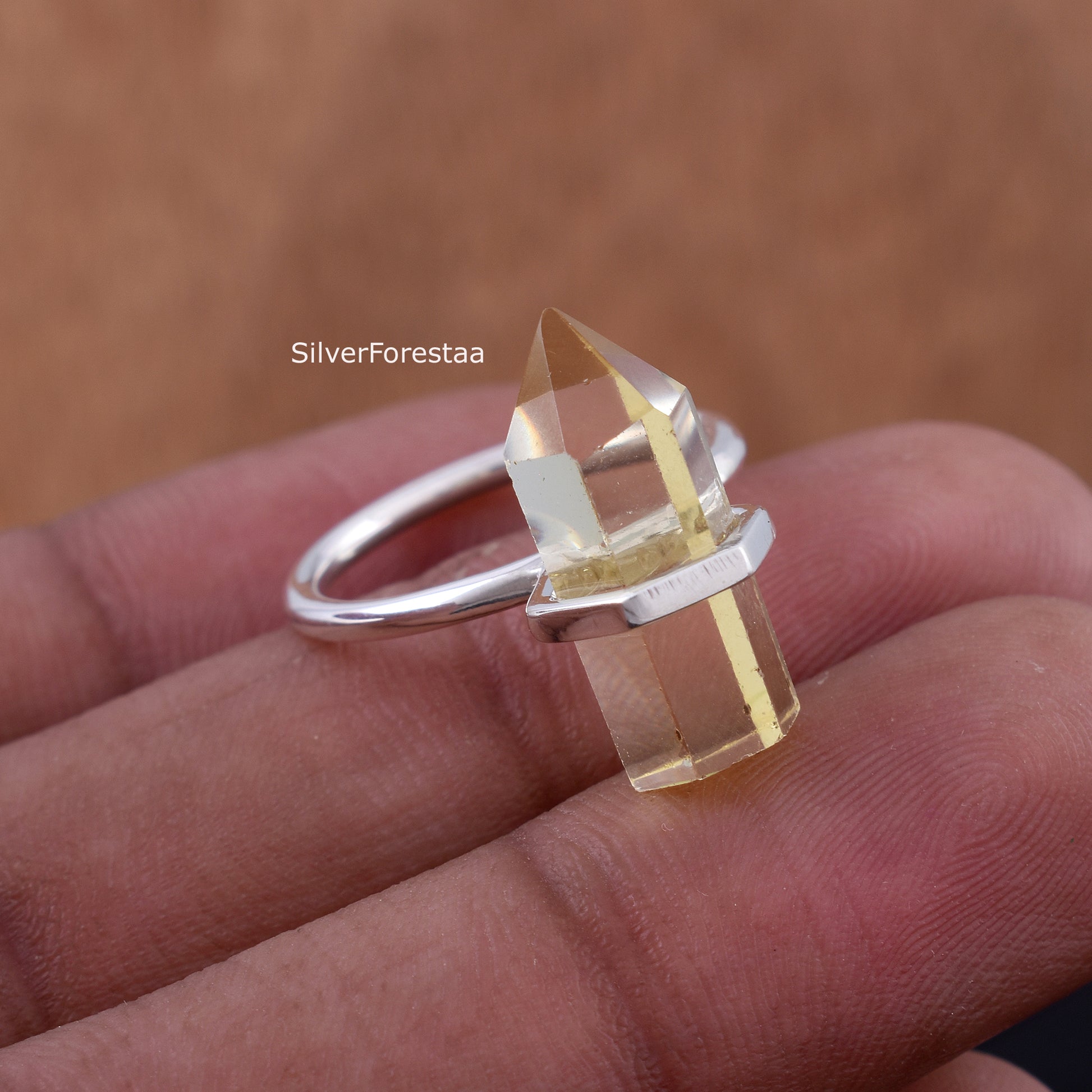 Lemon Quartz Pencil Shape Ring, Handmade Ring, 925 Silver Ring, Lemon Quartz Jewelry, Gemstone Ring, Fidget Ring, Pencil Shape Ring.