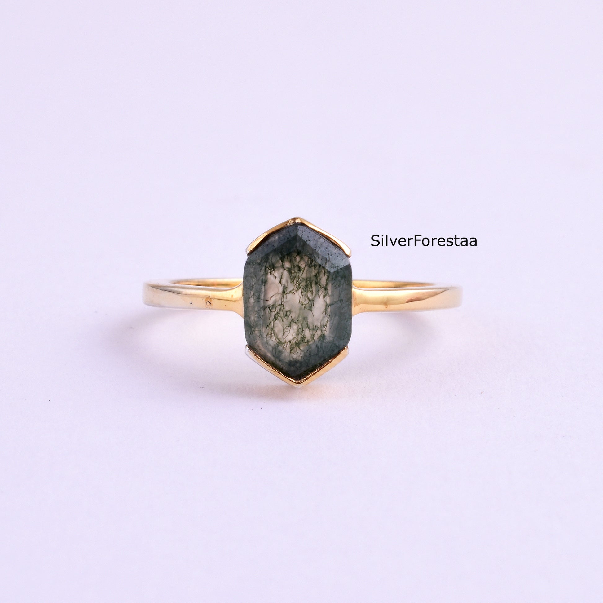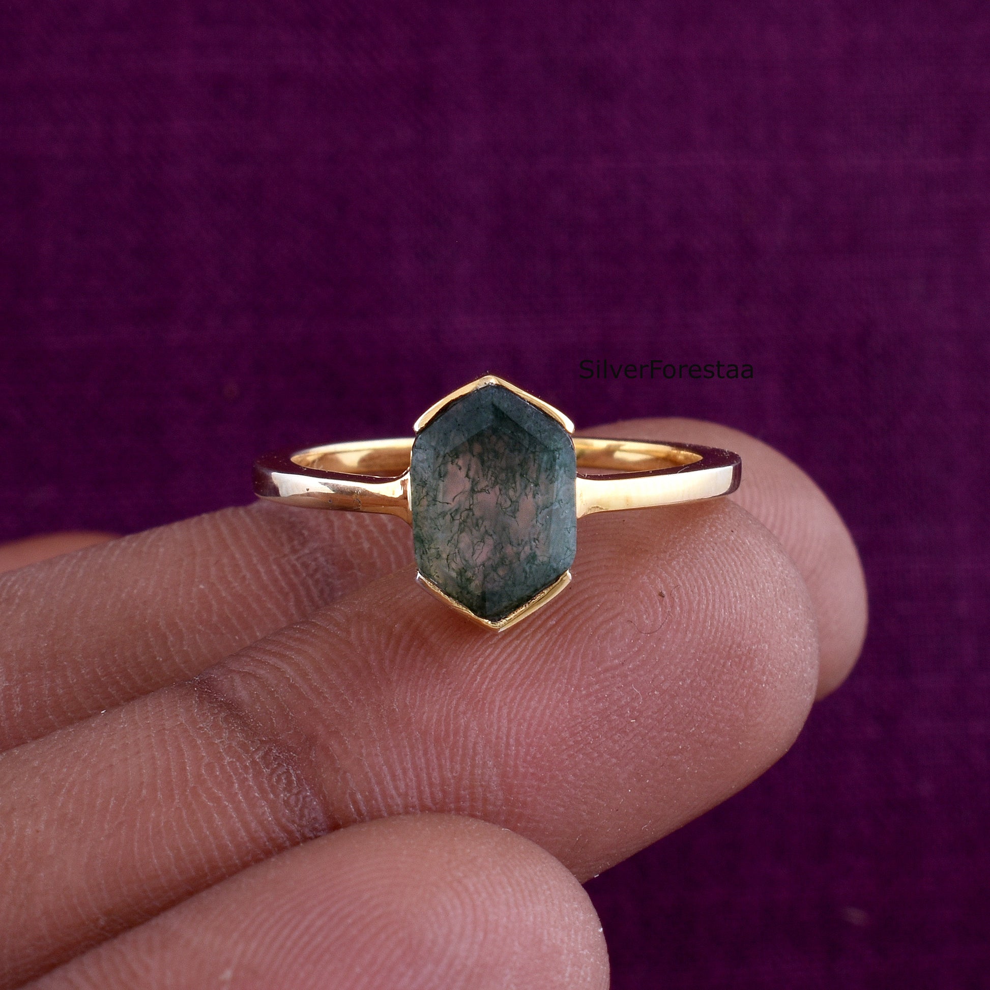 Midnight Moss Agate Ring | Sterling Silver Engagement Ring