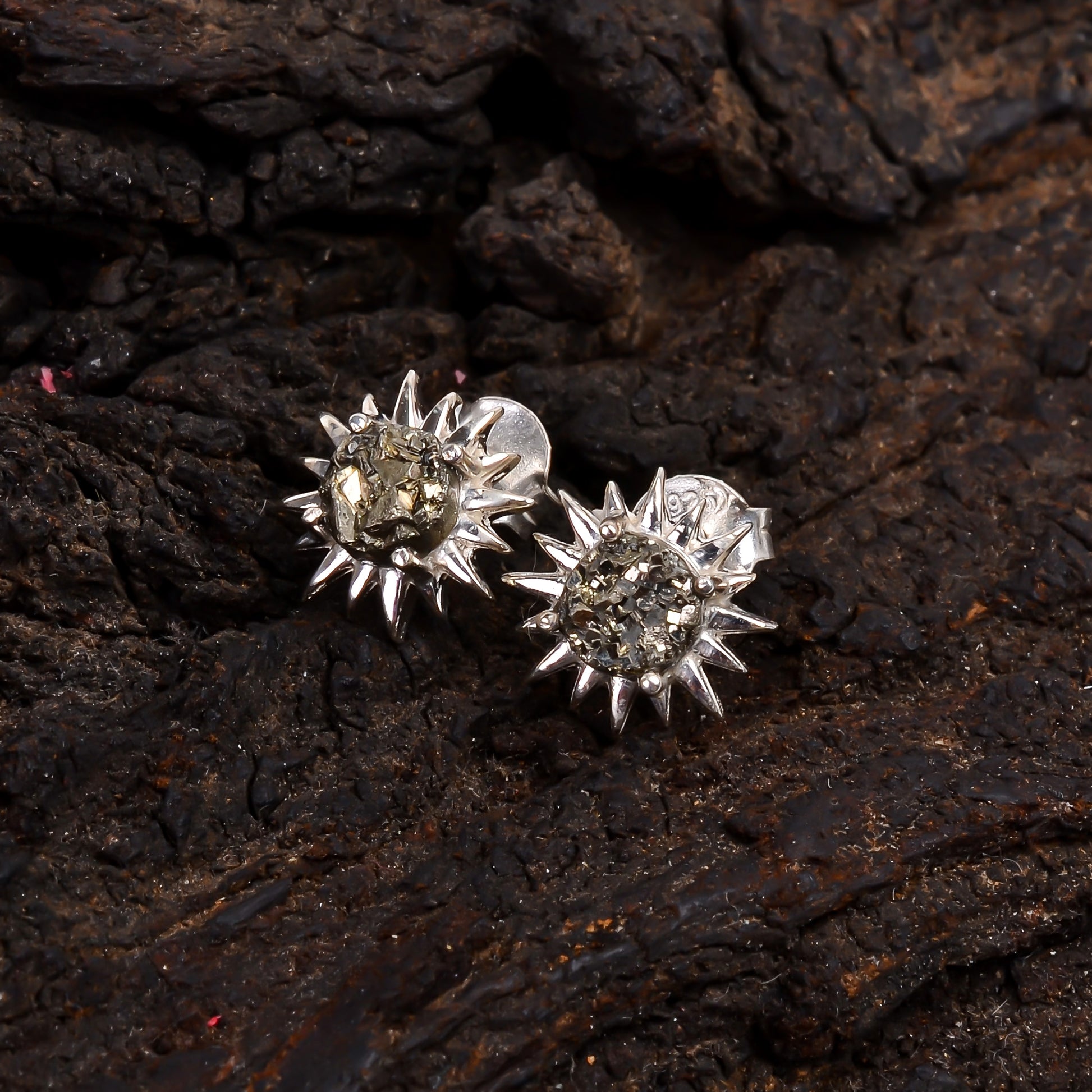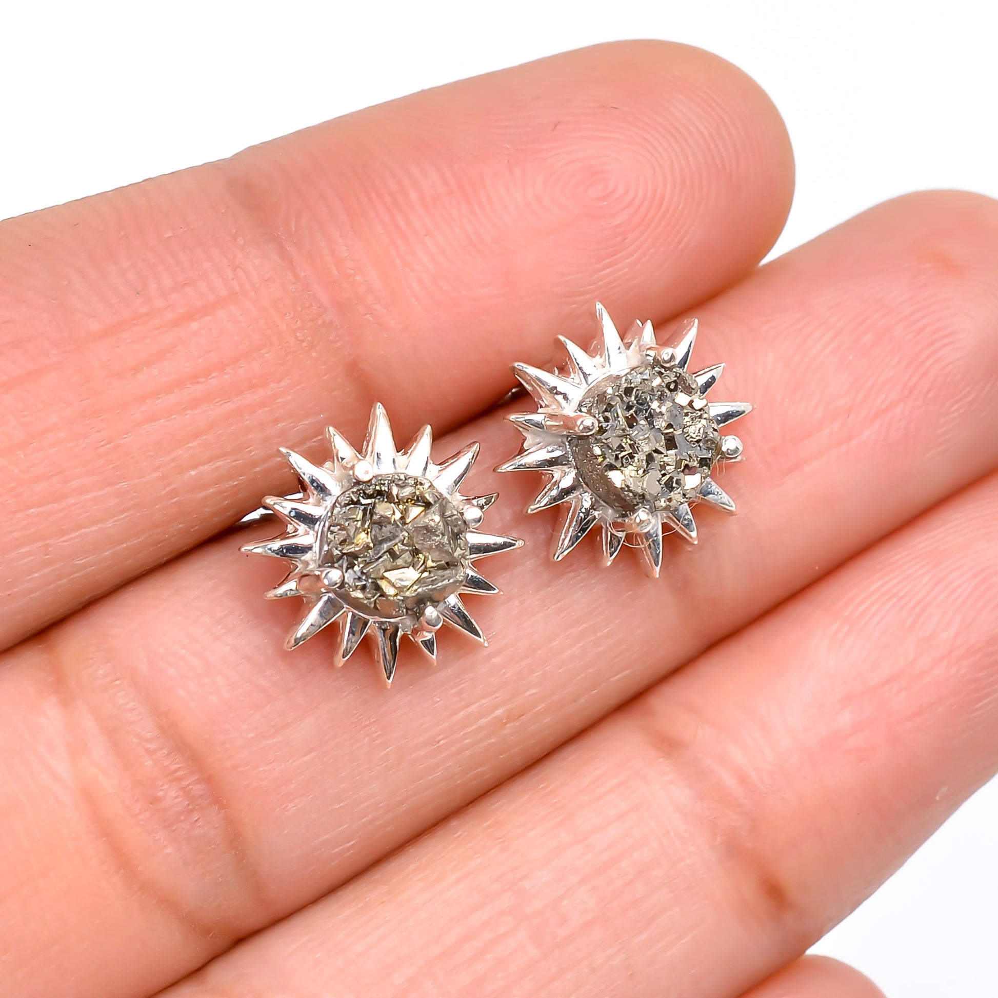 RAW PYRITE Stud Earrings*Iron Pyrite Ear Studs*Tektite Gemstone Stud Earrings*Sterling Silver earrings*Raw Pyrite Studs*Anniversary Gift.