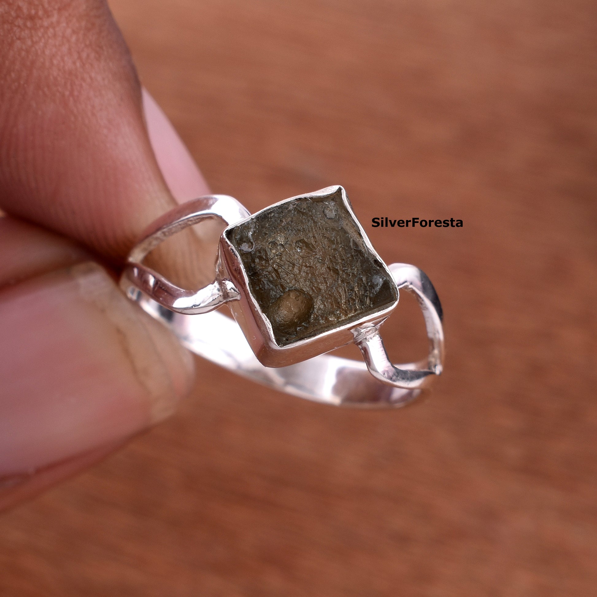 Natural Moldavite Silver Ring Rough Moldavite Ring Healing Moldavite Mateorite Ring Genuine Czech Republic Moldavite Ring Raw Moldavite Ring