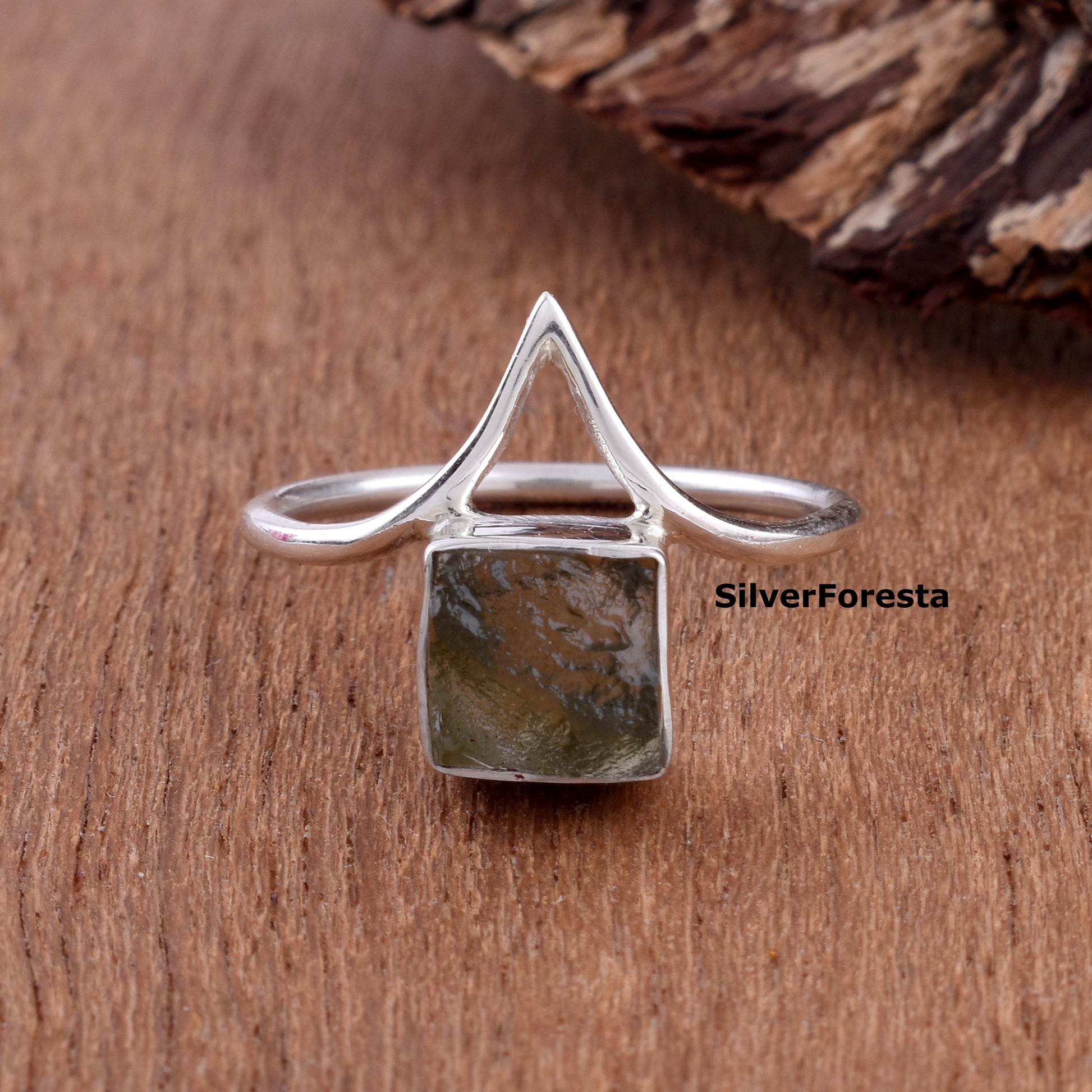 Moldavite Meteorite Ring | Handmade Silver Jewelry