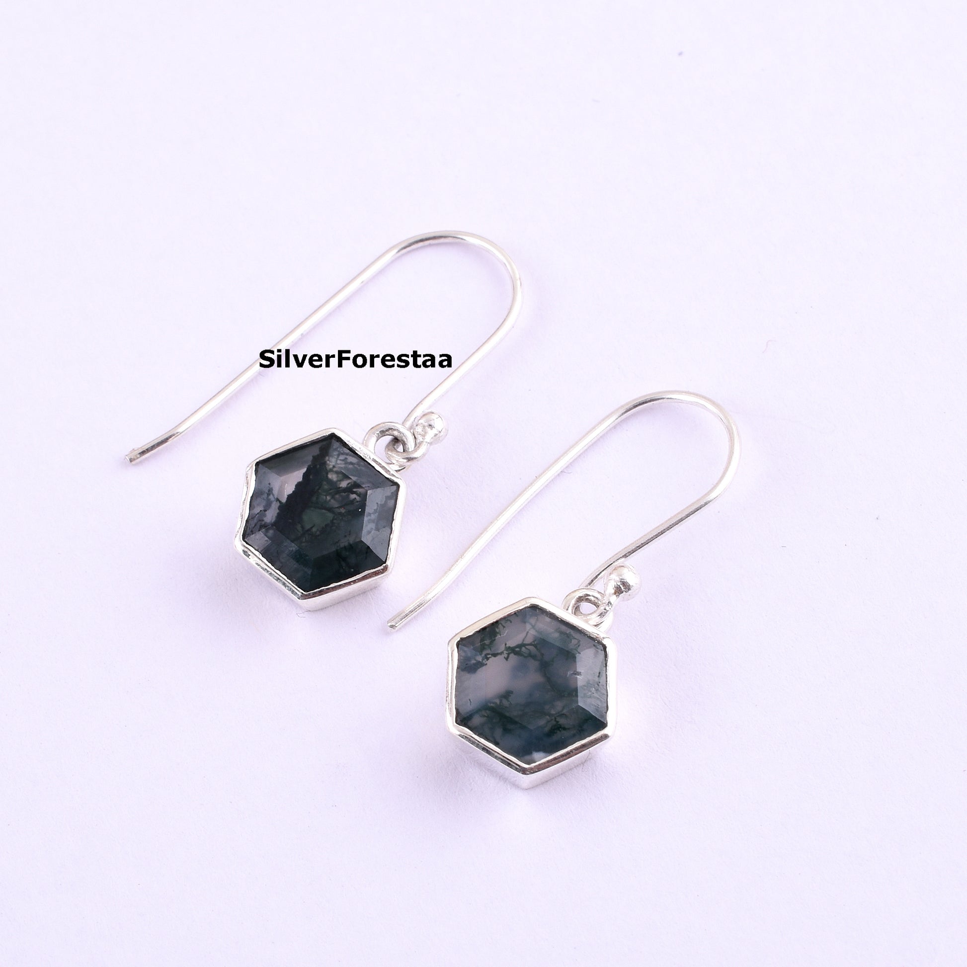 Moss Agate Silver Earrings Earthy Elegance - SilverForestaa