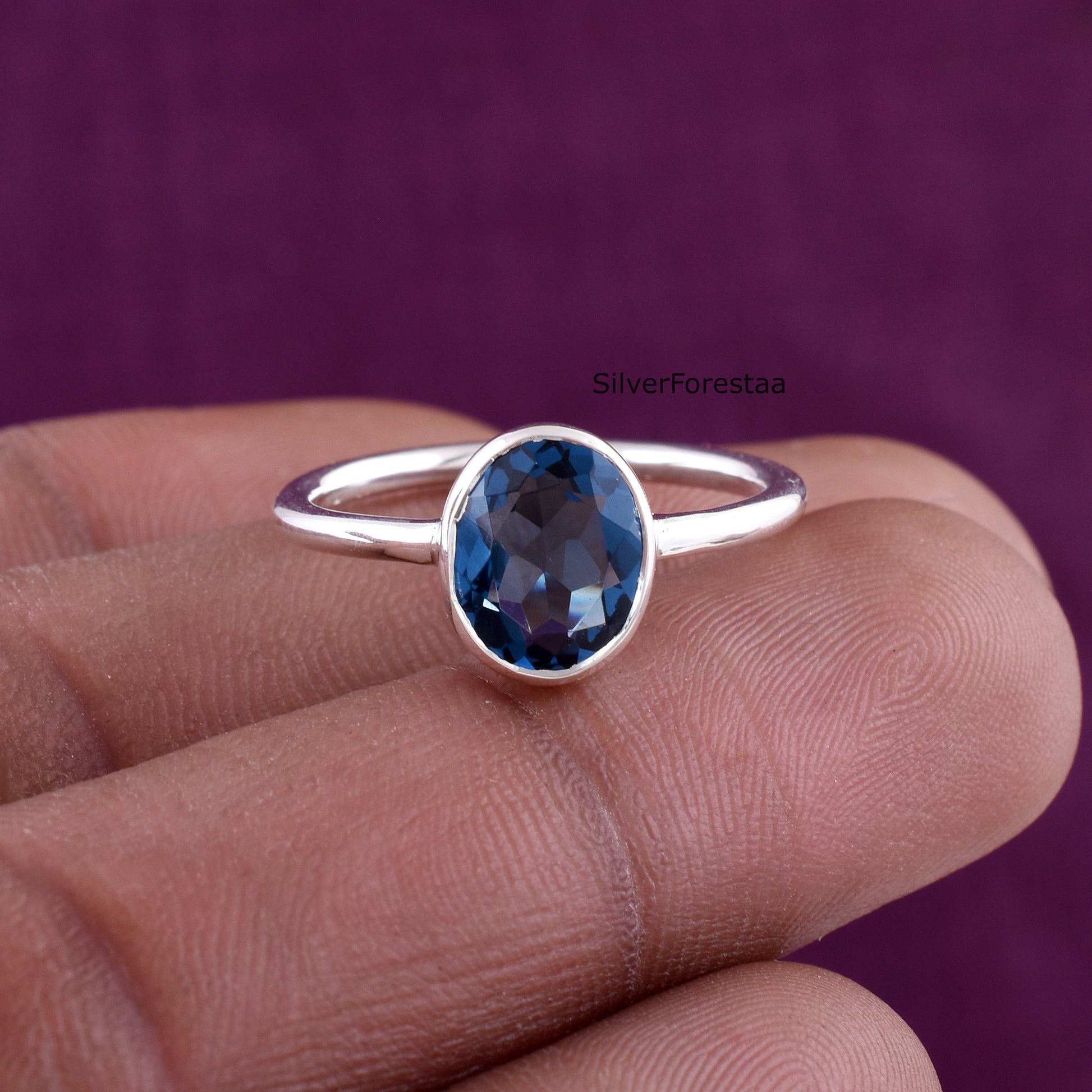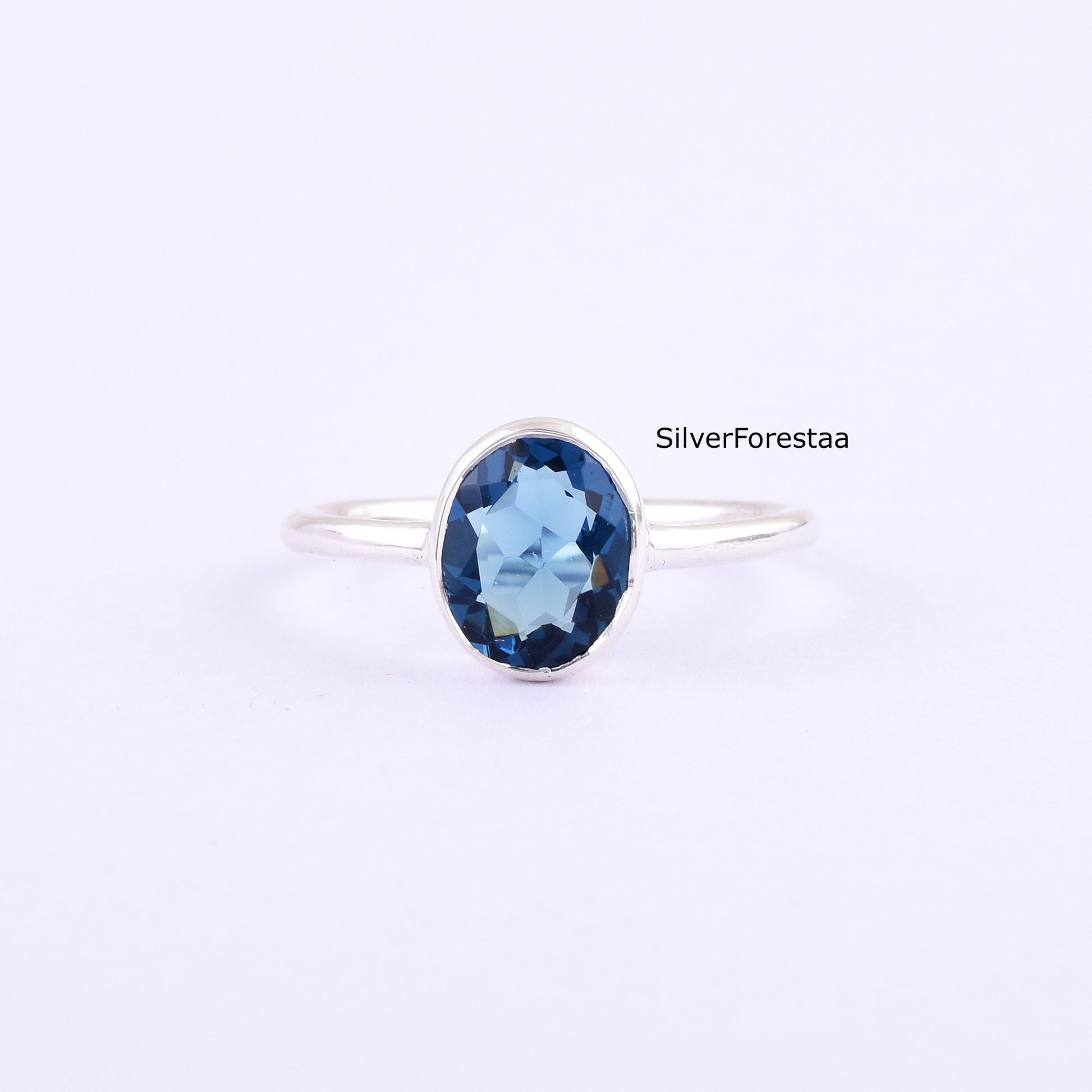 Natural Blue Topaz Silver Ring – Handmade Dainty Jewelry