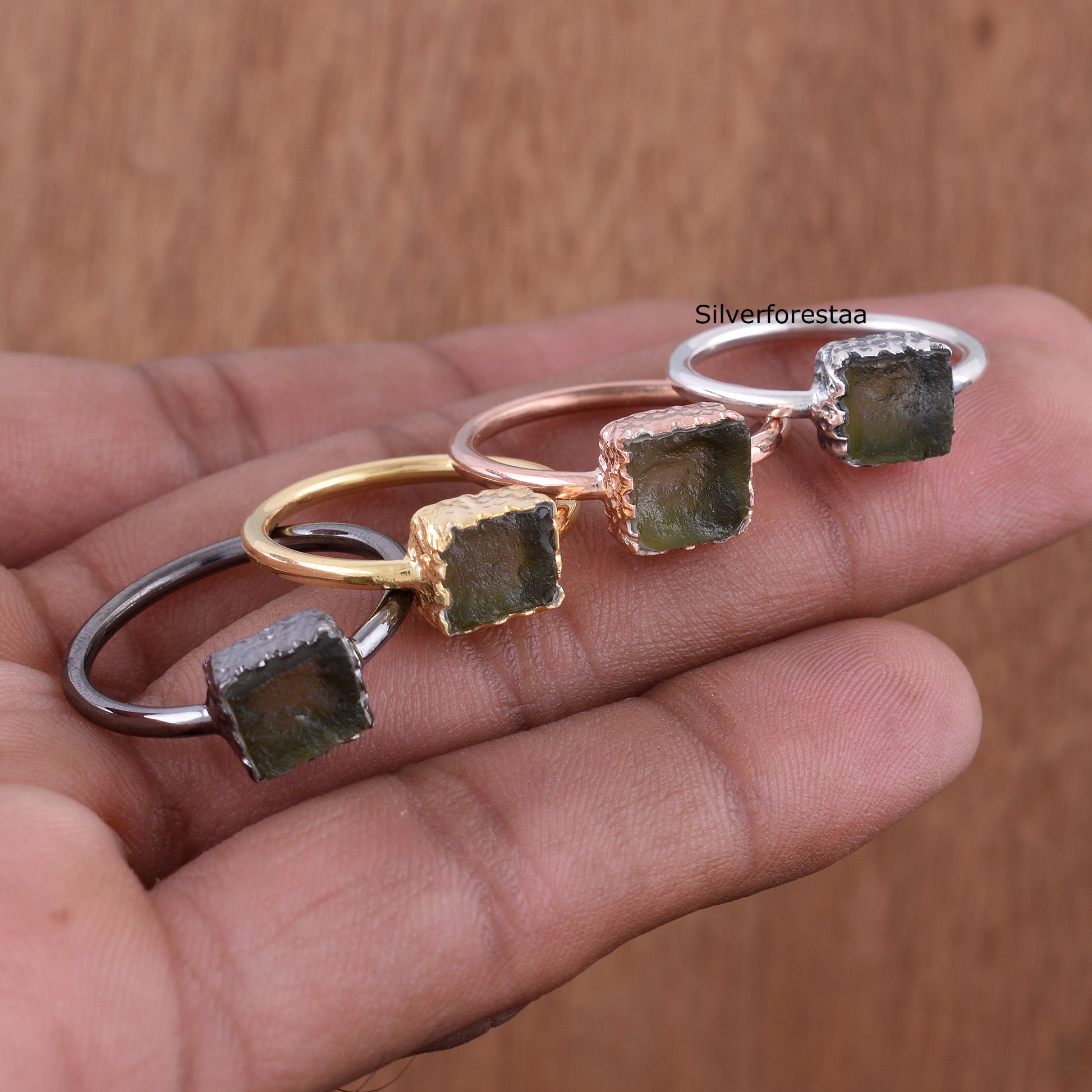 Natural Moldavite Ring Raw Rough Moldavite Ring Engagement Ring Healing Moldavite Meteorite Ring Transformation Jewelry Christmas Gifts