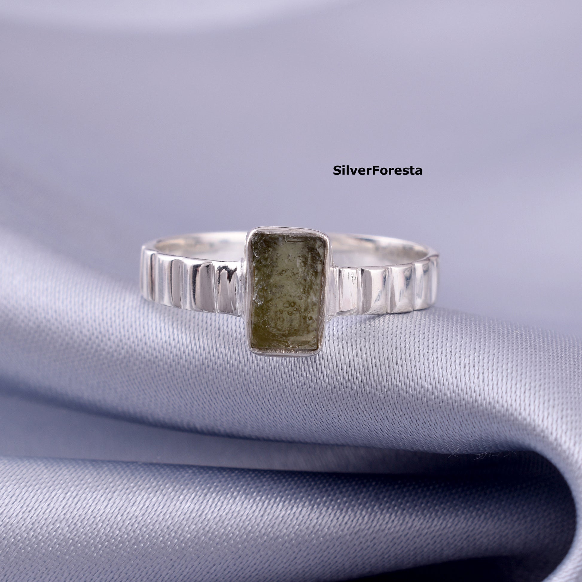 Natural Moldavite Silver Ring Rough Moldavite Ring Healing Moldavite Mateorite Ring Genuine Czech Republic Moldavite Ring Raw Moldavite Ring