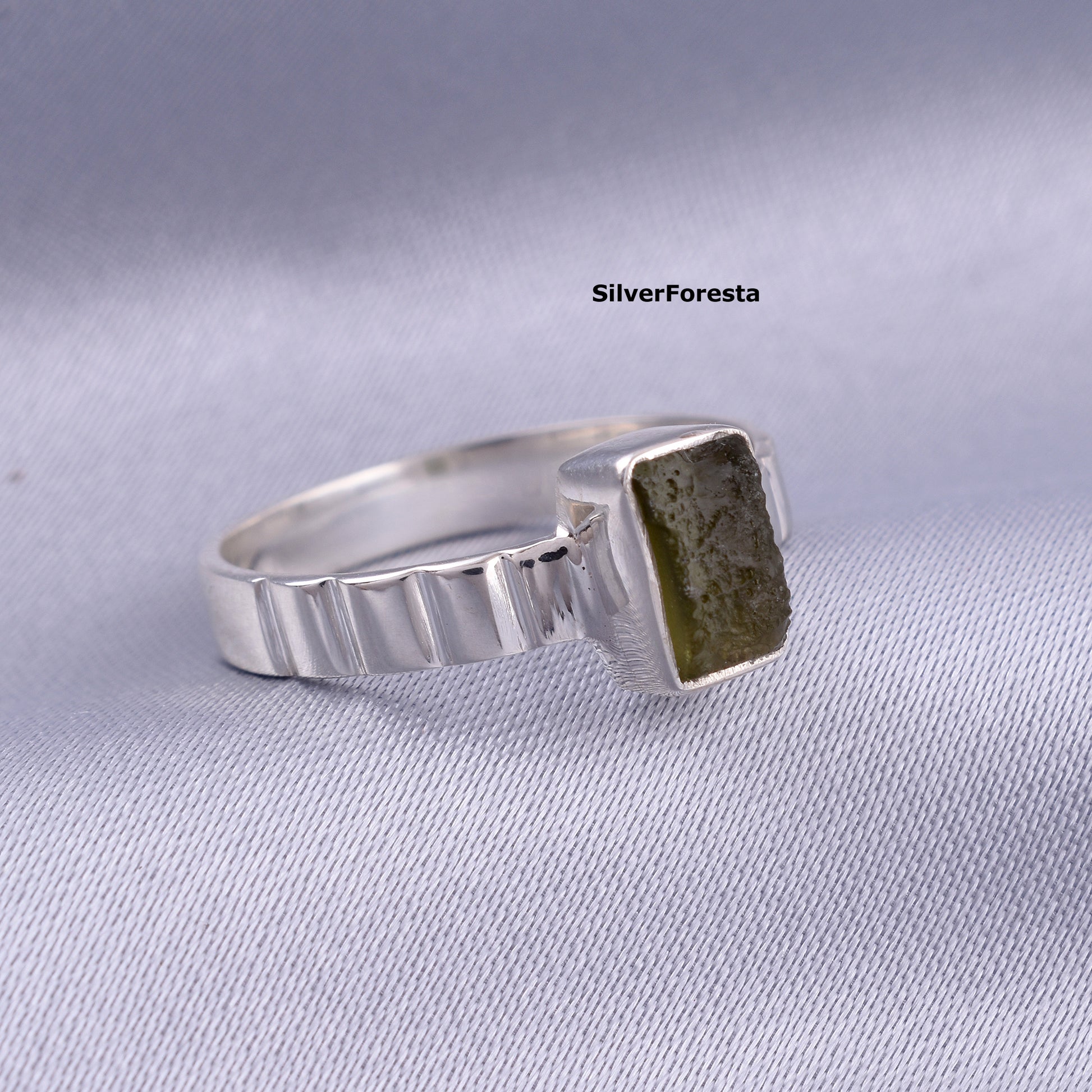 Moldavite Ring Rough/925 Sterling Silver Natural Handmade Gemstone Ring/Healing Moldavite/Raw Natural Moldavite Ring/Healing Gemstone Ring