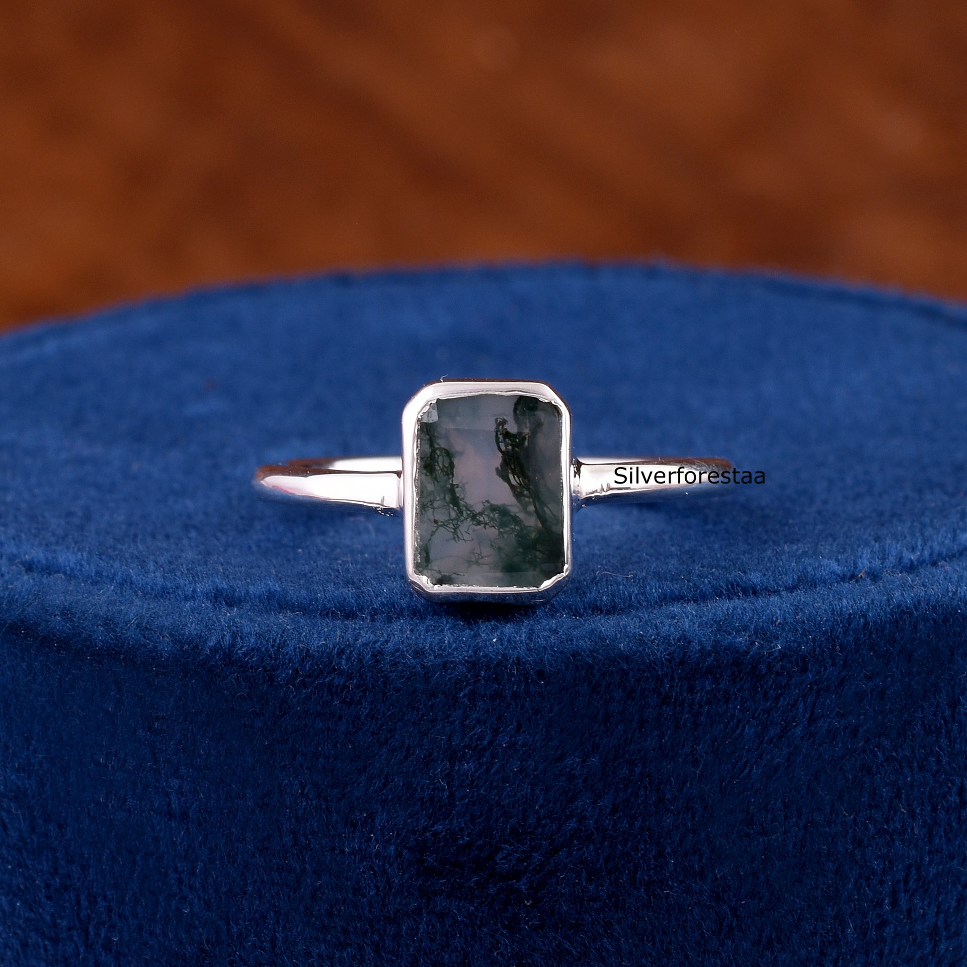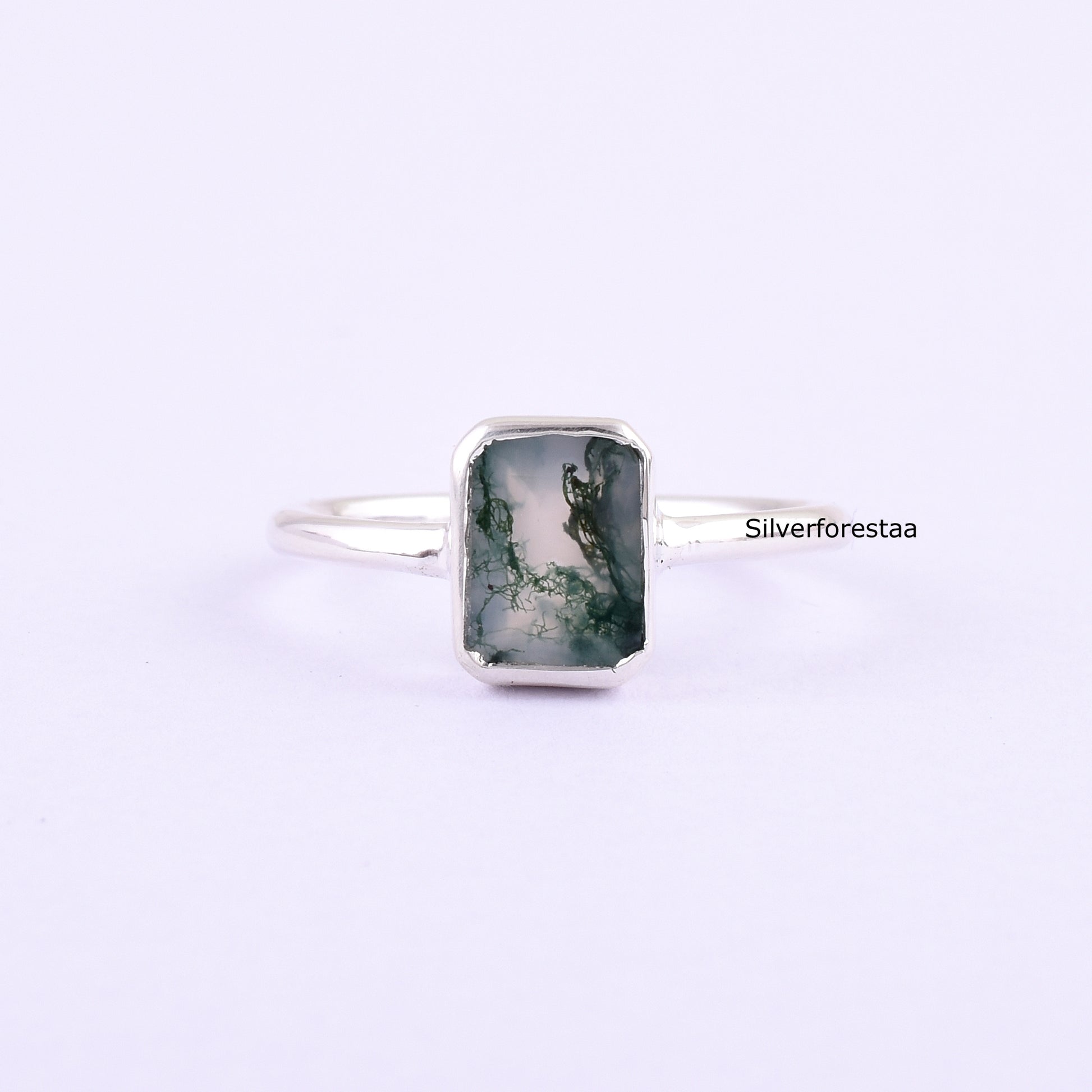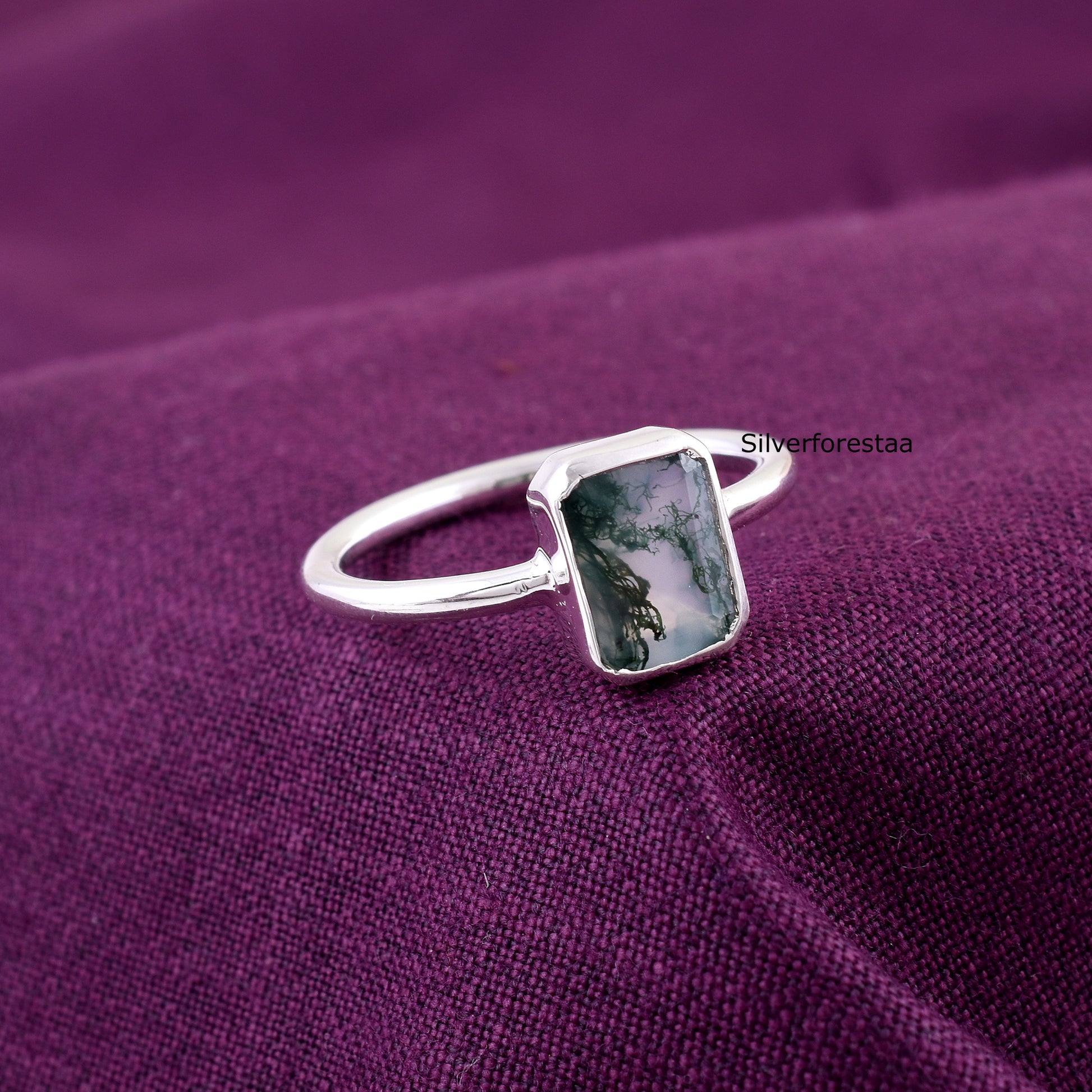 Natural Moss Agate Ring 925 Silver Gemstone Jewelry