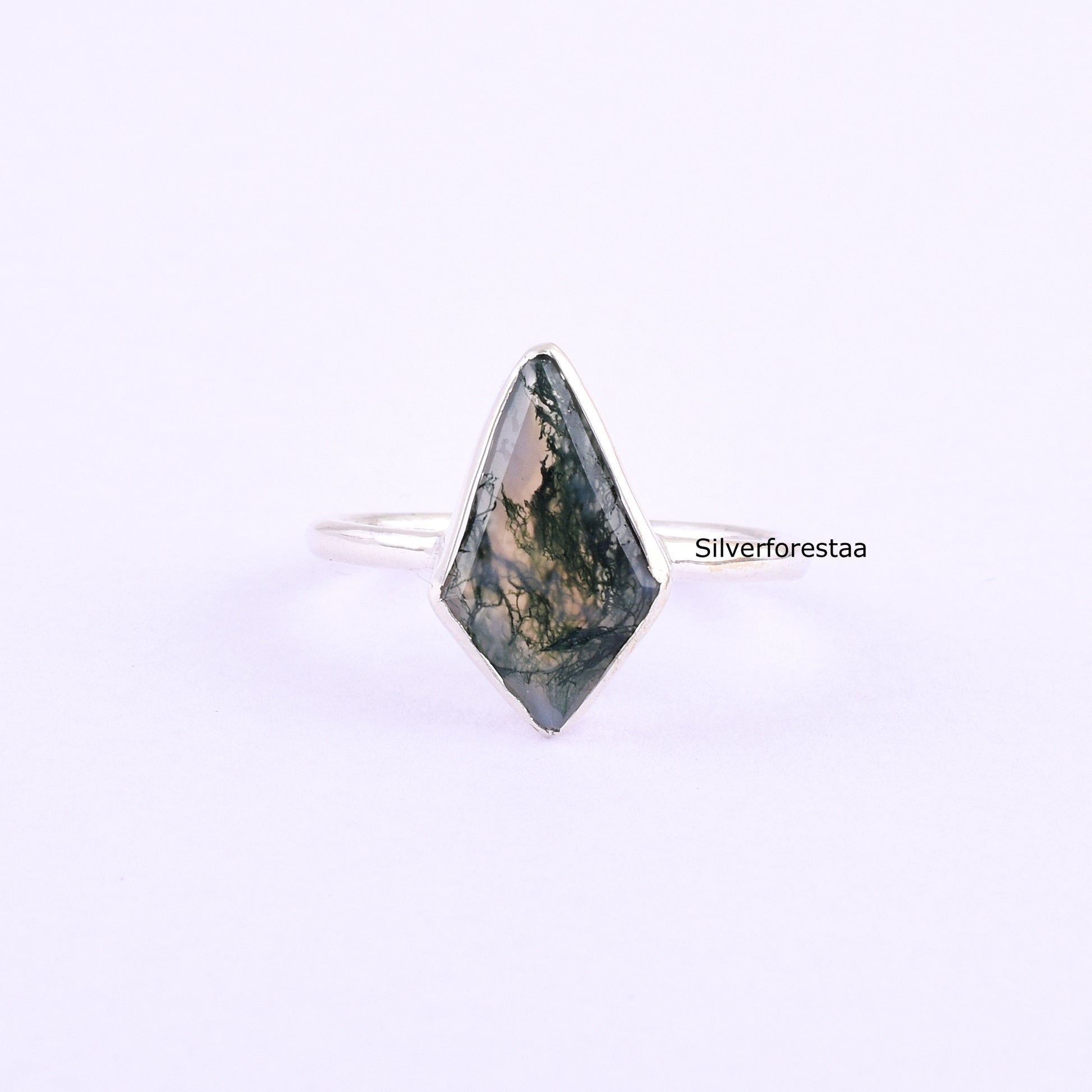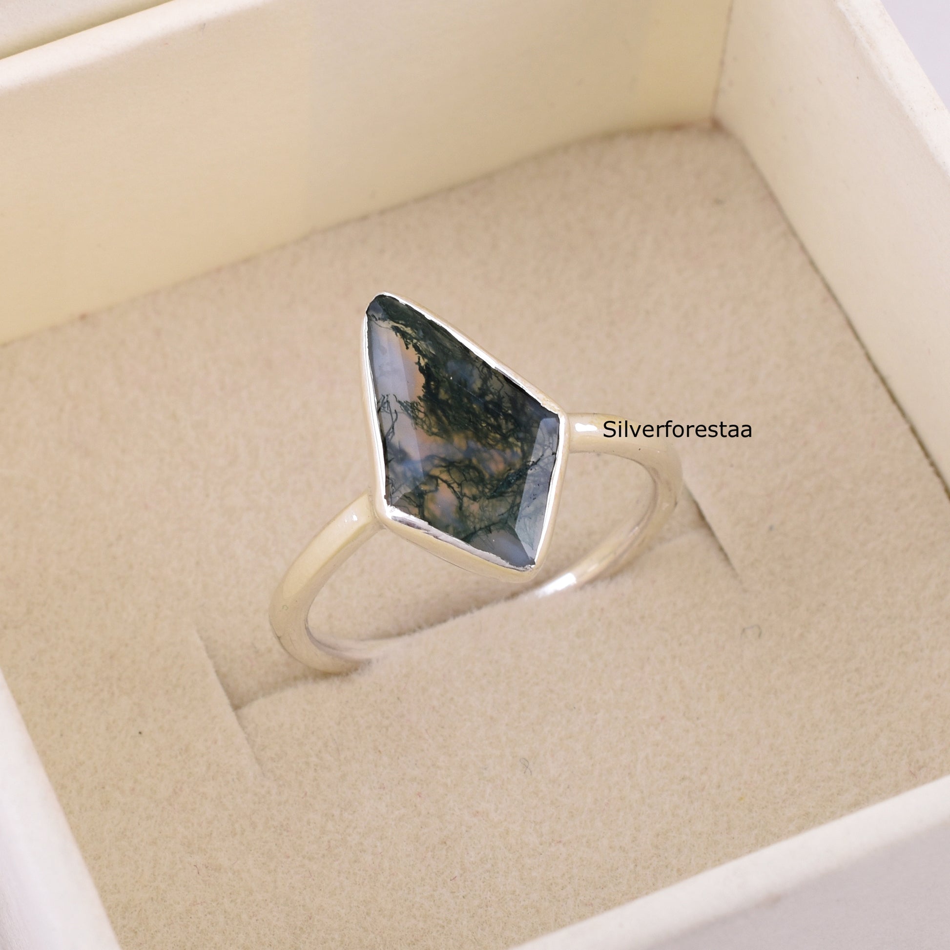 Natural Moss Agate Ring, 925 Sterling Silver Ring, Anniversary Rings, Kite Shape Moss Agate Ring, Gemstone Ring, Agate Jewelry, Gift For Her