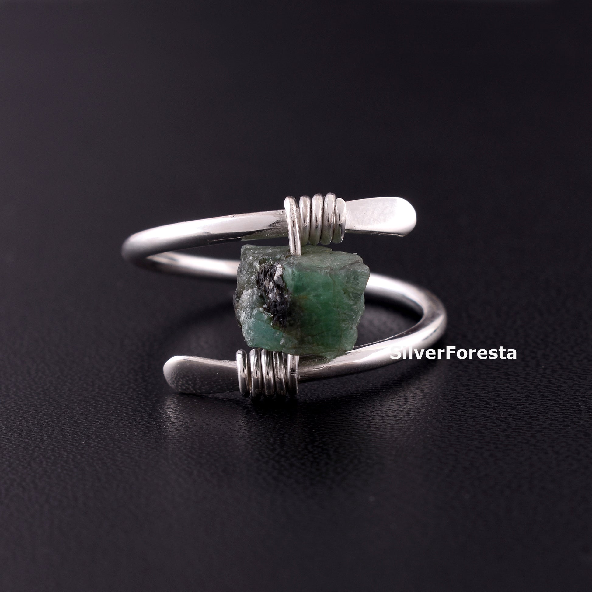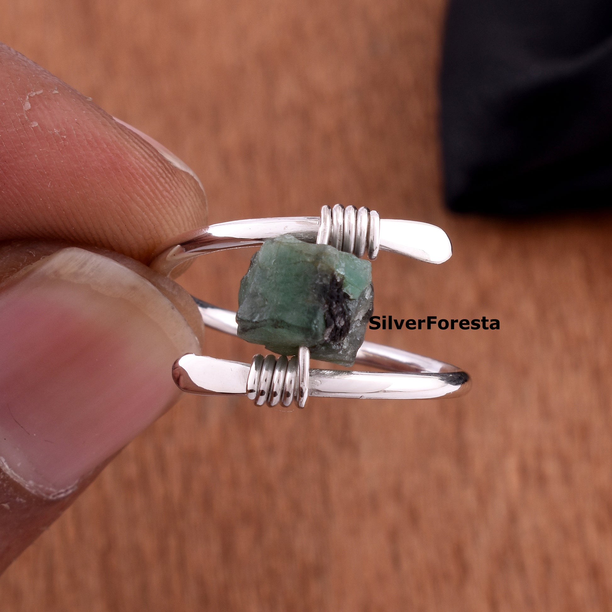 Natural Raw Emerald Ring, Sterling Silver Ring, Rough Genuine Emerald Jewelry, Dainty Ring, May Birthstone Ring, Gemstone Ring, Gift Her.