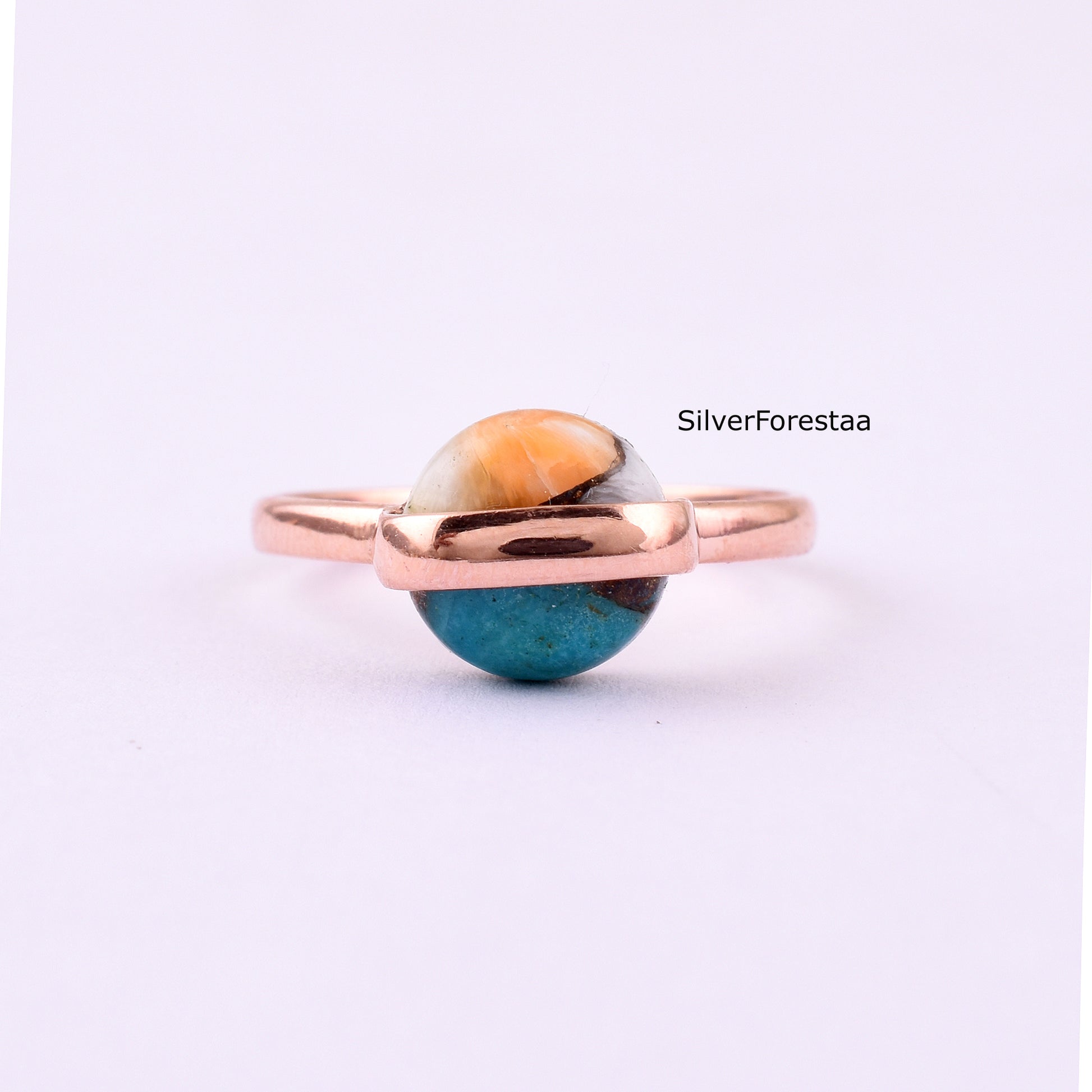 Oyster Copper Ring, Copper Oyster Turquoise Ring, Silver Gemstone Ring, Handmade Jewelry, December Turquoise Ring, Gift For Wife.