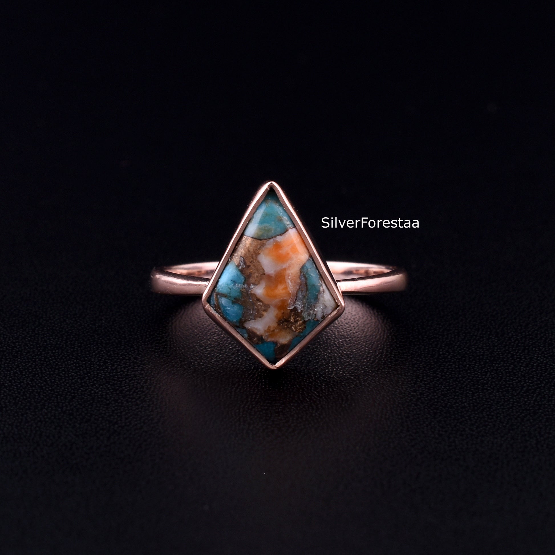 Oyster Copper Turquoise Ring, 925 Sterling Silver Ring, Gemstone Ring, Womens Ring, Copper Turquoise Jewelry, Birthstone Ring, Gift For Her.