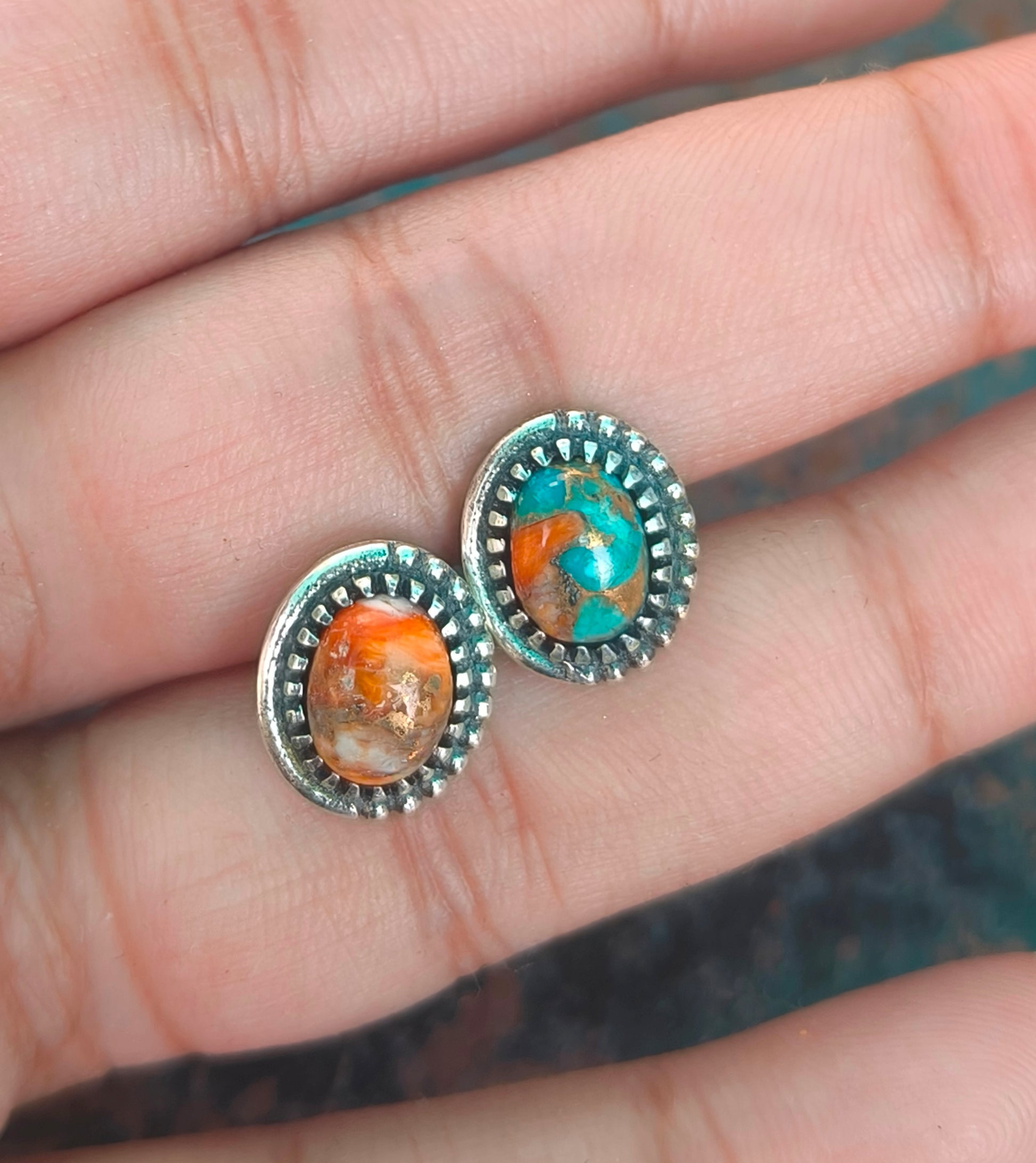 Oyster Turquoise Stud Earrings / 925 Sterling Silver Stud / Handmade Silver Jewelry / Birthday Gift for Girlfriend / Artisan Jewelry.