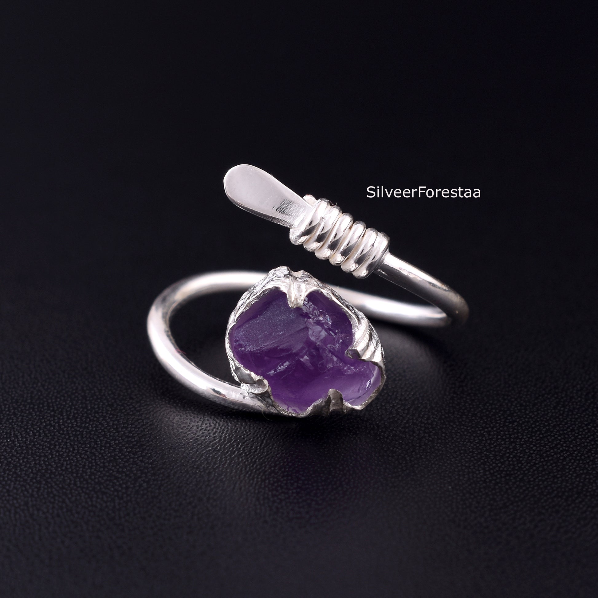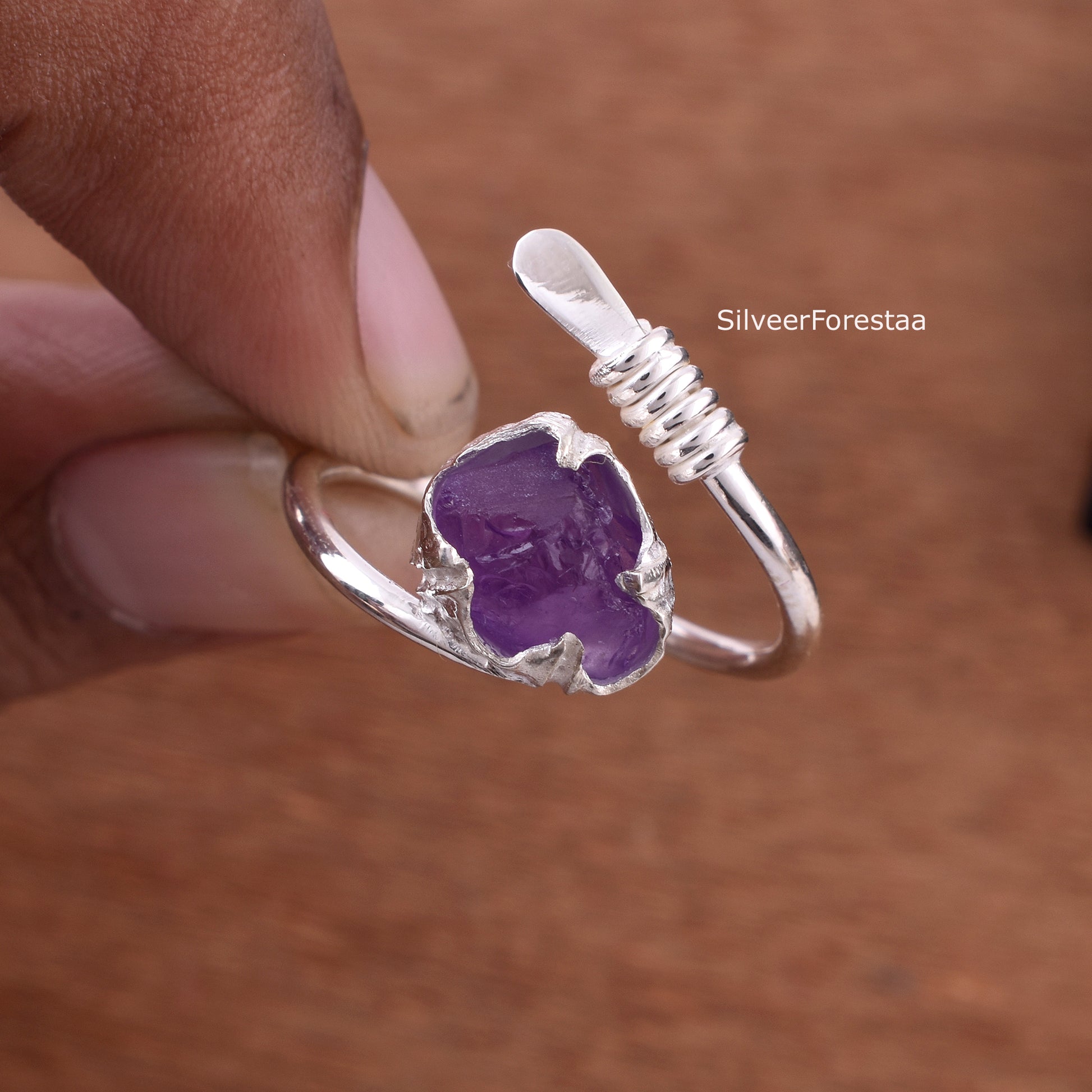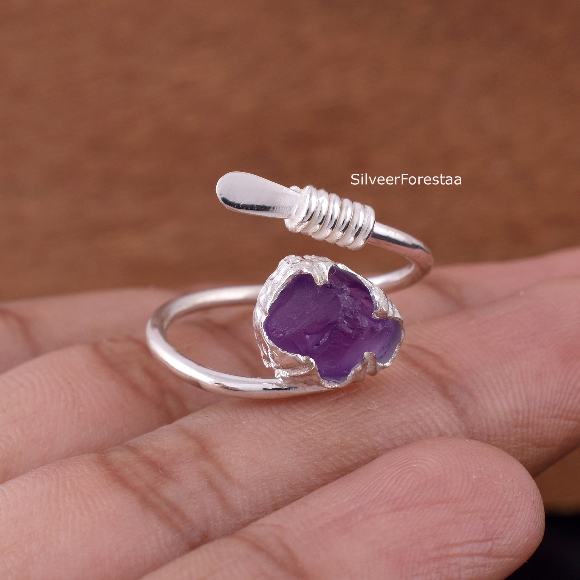 Amethyst Ring,Rough Amethyst Ring,Raw Sterling Silver Ring,Handmade Ring,Statement Ring,Amethyst Jewelry,Wedding Ring,Amethyst Twig Ring.