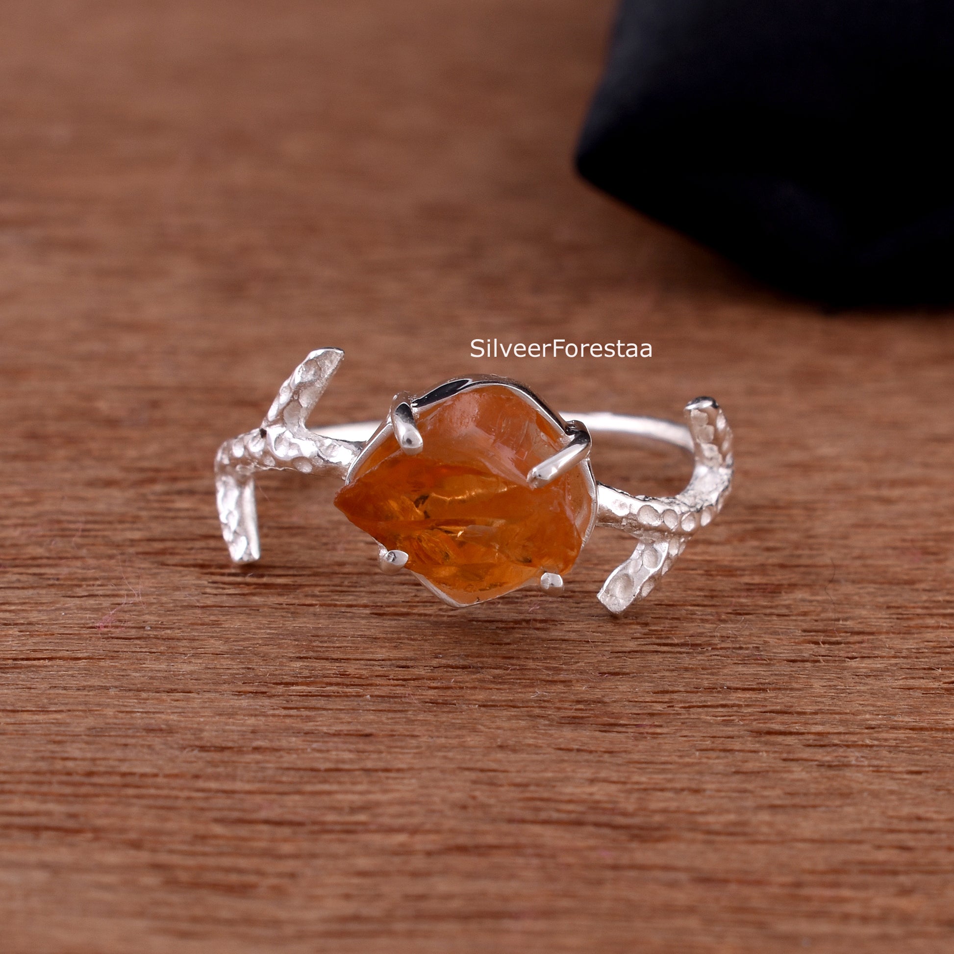 Raw Citrine Branch Ring, Unique Handmade Jewelry