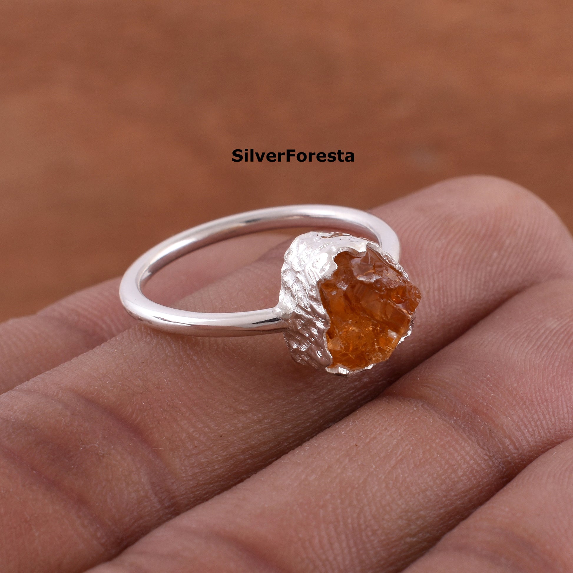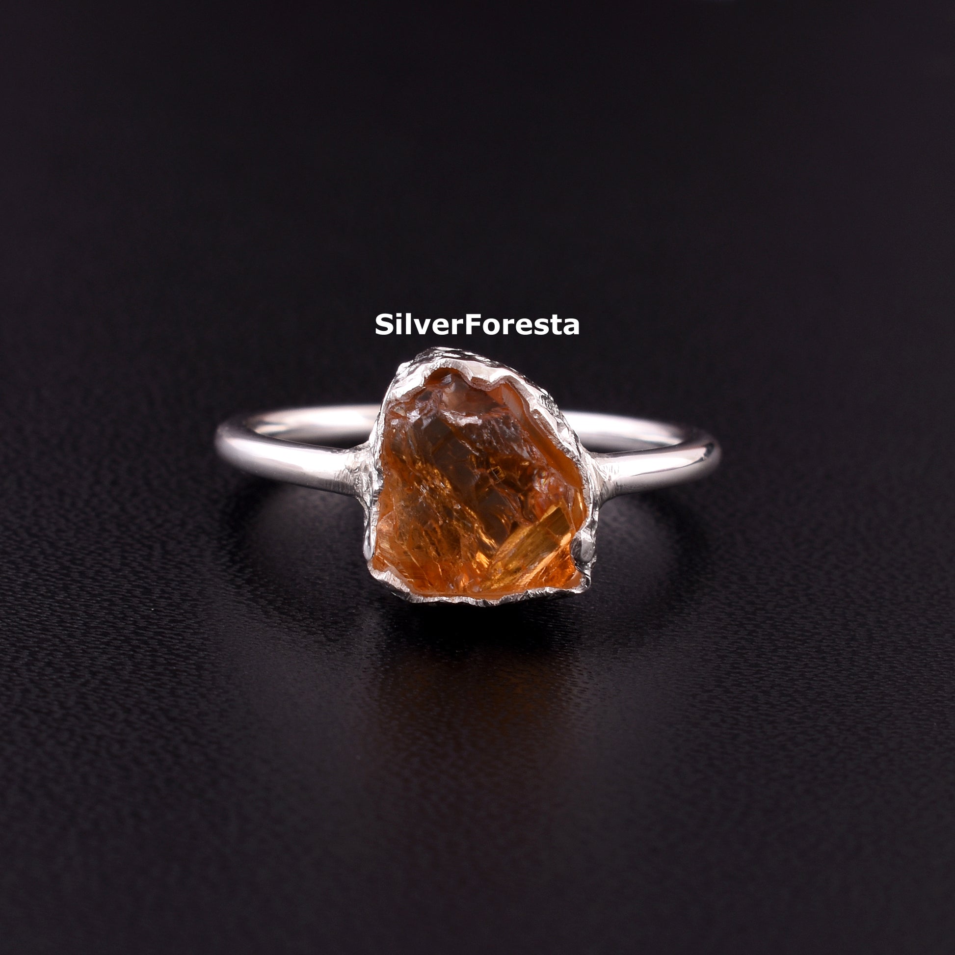 Raw Citrine Gemstone Ring - SilverForestaa
