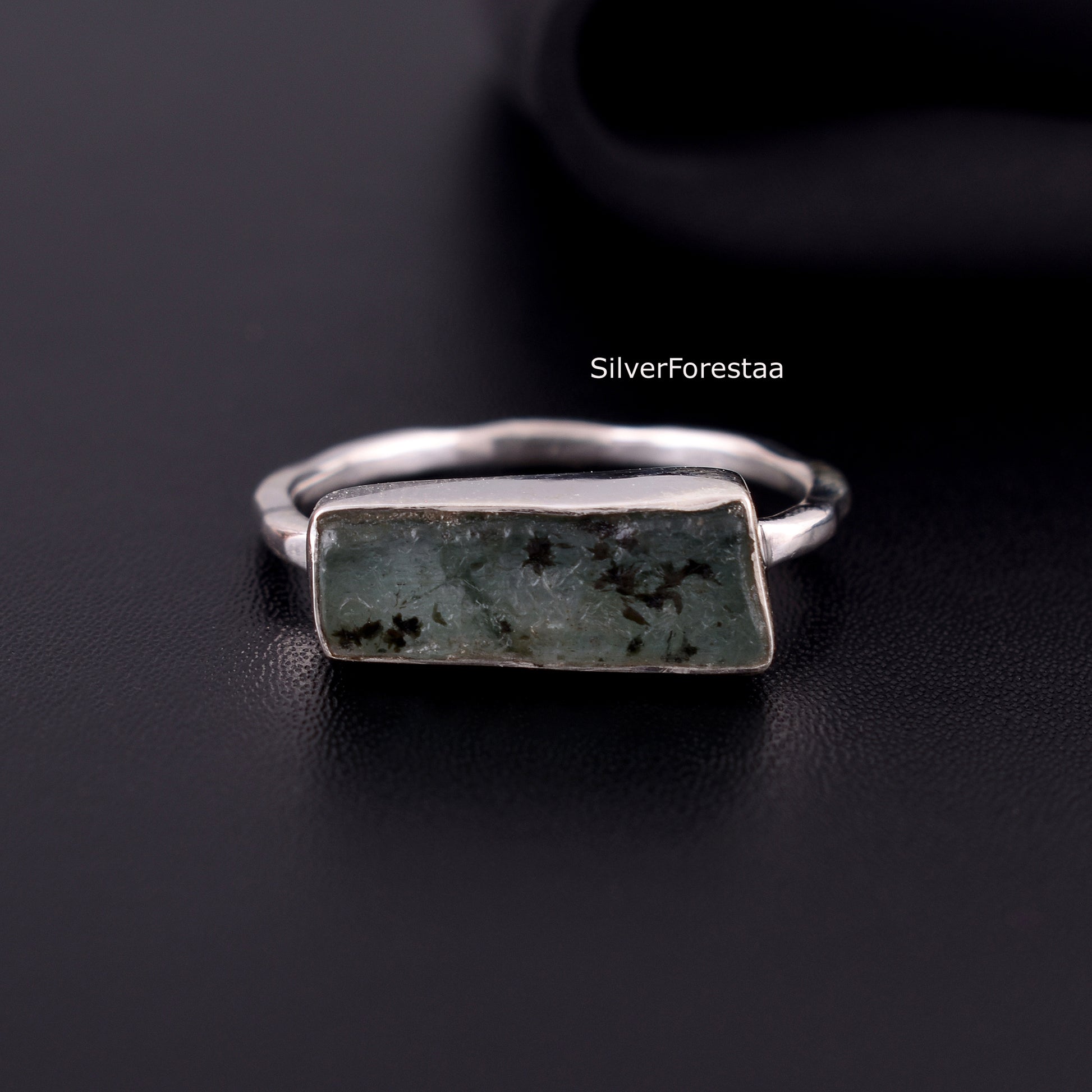 Natural Raw Emerald Chips Ring, Sterling Silver Ring, Rough Gemstone Ring, Handmade Ring, Metaphysical Ring, Emerald Chip Ring, Gift For Her