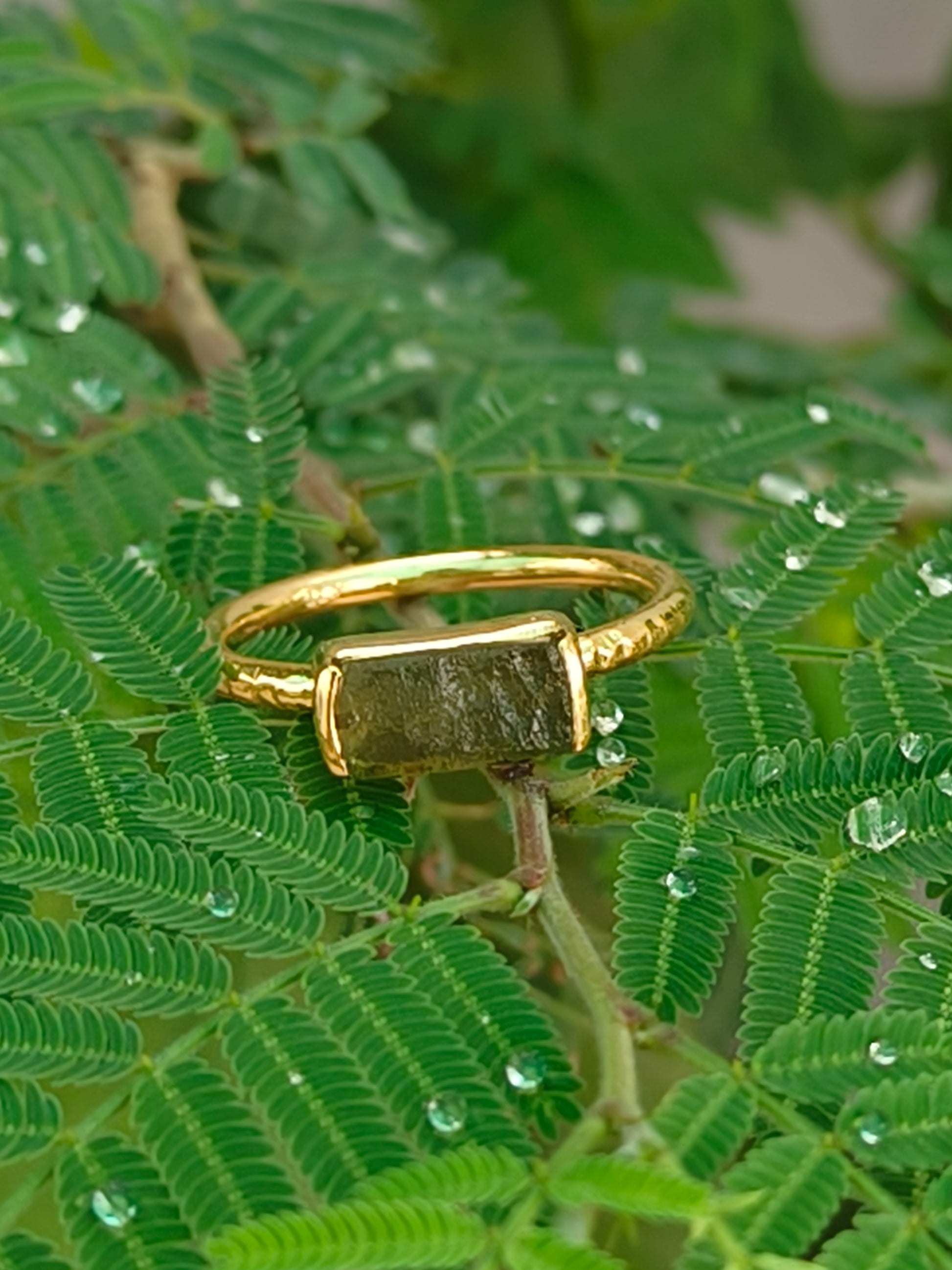 Natural Moldavite Silver Ring Rough Moldavite Ring Healing Moldavite Mateorite Ring Genuine Czech Republic Moldavite Ring Raw Moldavite Ring