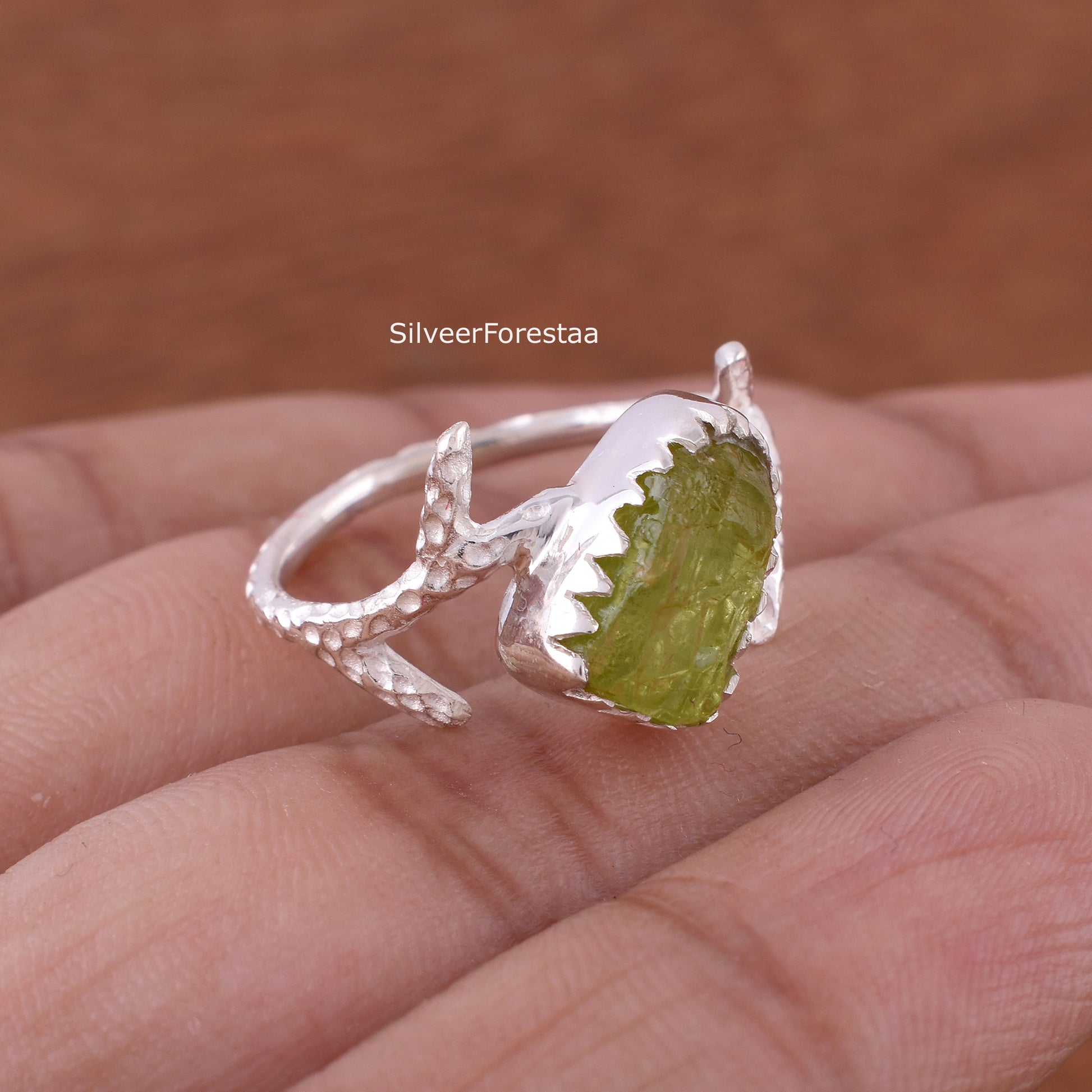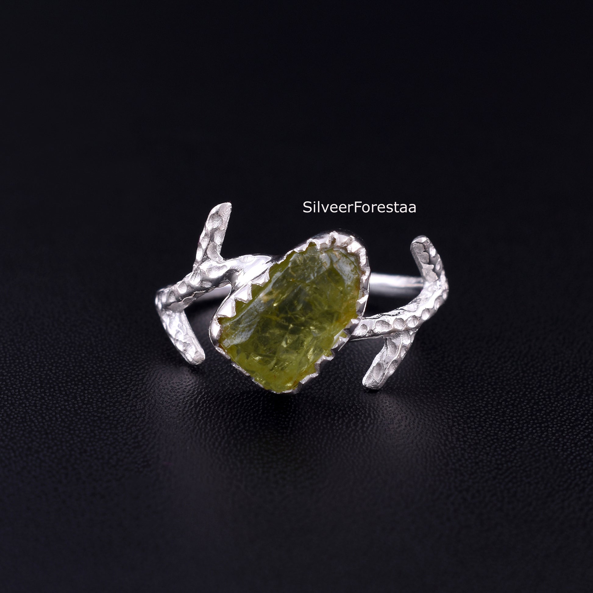 Rough Peridot Branch Ring, 925 Silver Ring, Gemstone Ring, Raw Crystal Ring, Natural Peridot Raw Stone Ring, Wedding Ring, Gift For Her.