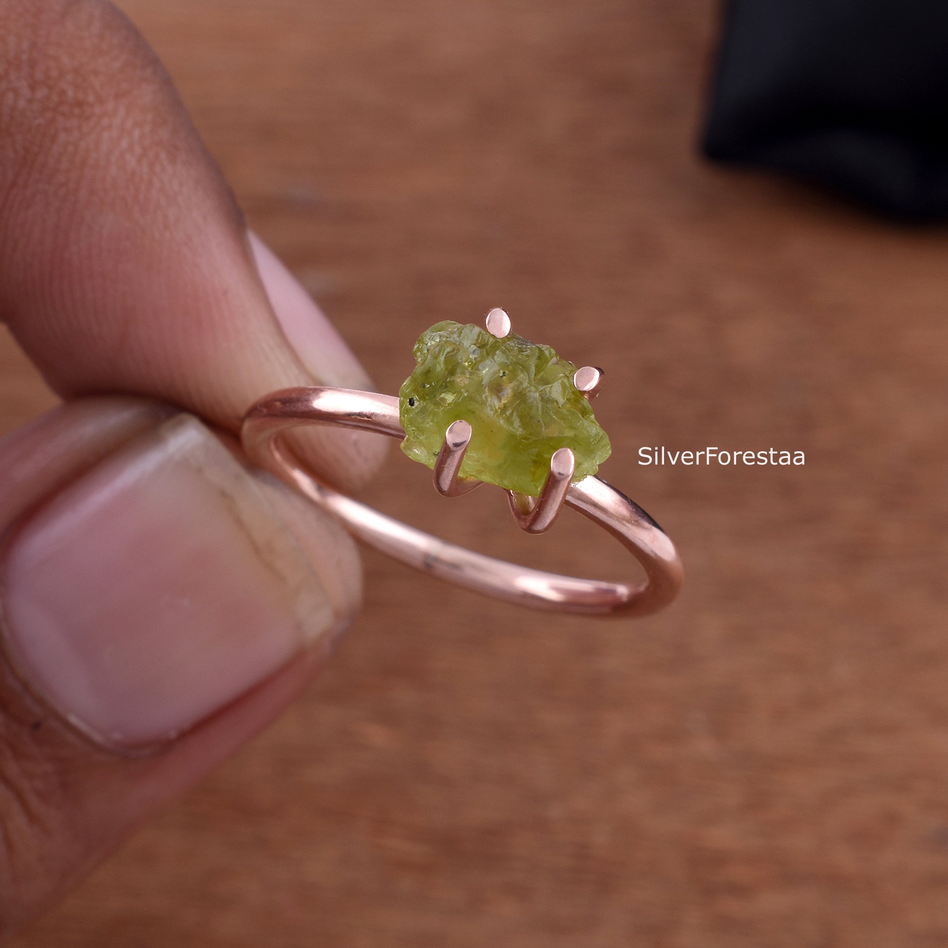 Raw Peridot Ring – Handmade Sterling Silver Gemstone Ring