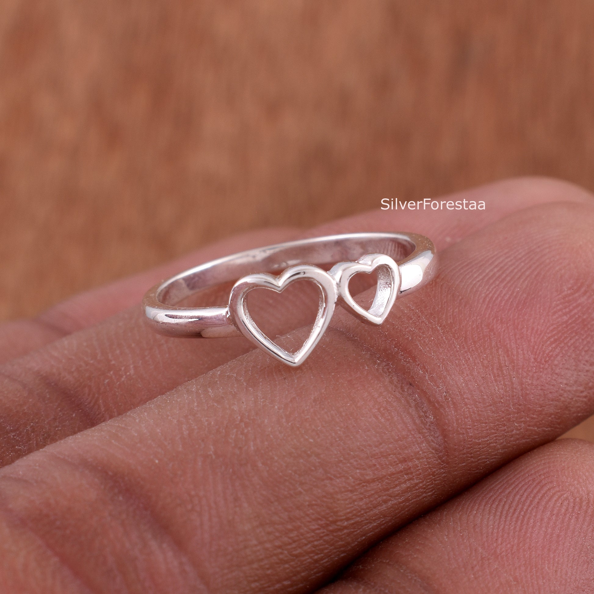Double Heart Ring, Sterling Silver Ring, Rose Gold Ring, Everyday Ring, Gift For Girlfriend, Romantic Lovers Ring, Heart Frame Ring.