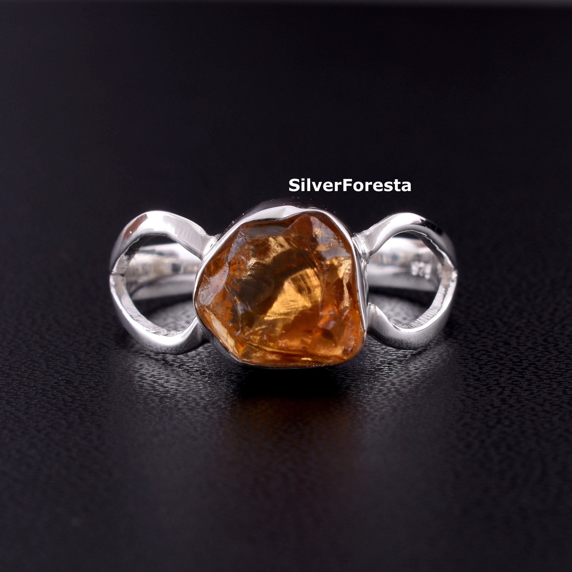 Rough Citrine Gemstone Ring, 925 Sterling Silver Ring, Rough Crystal Ring, Statement Ring, Natural Citrine Ring, Artisan Ring, Gift For Her.