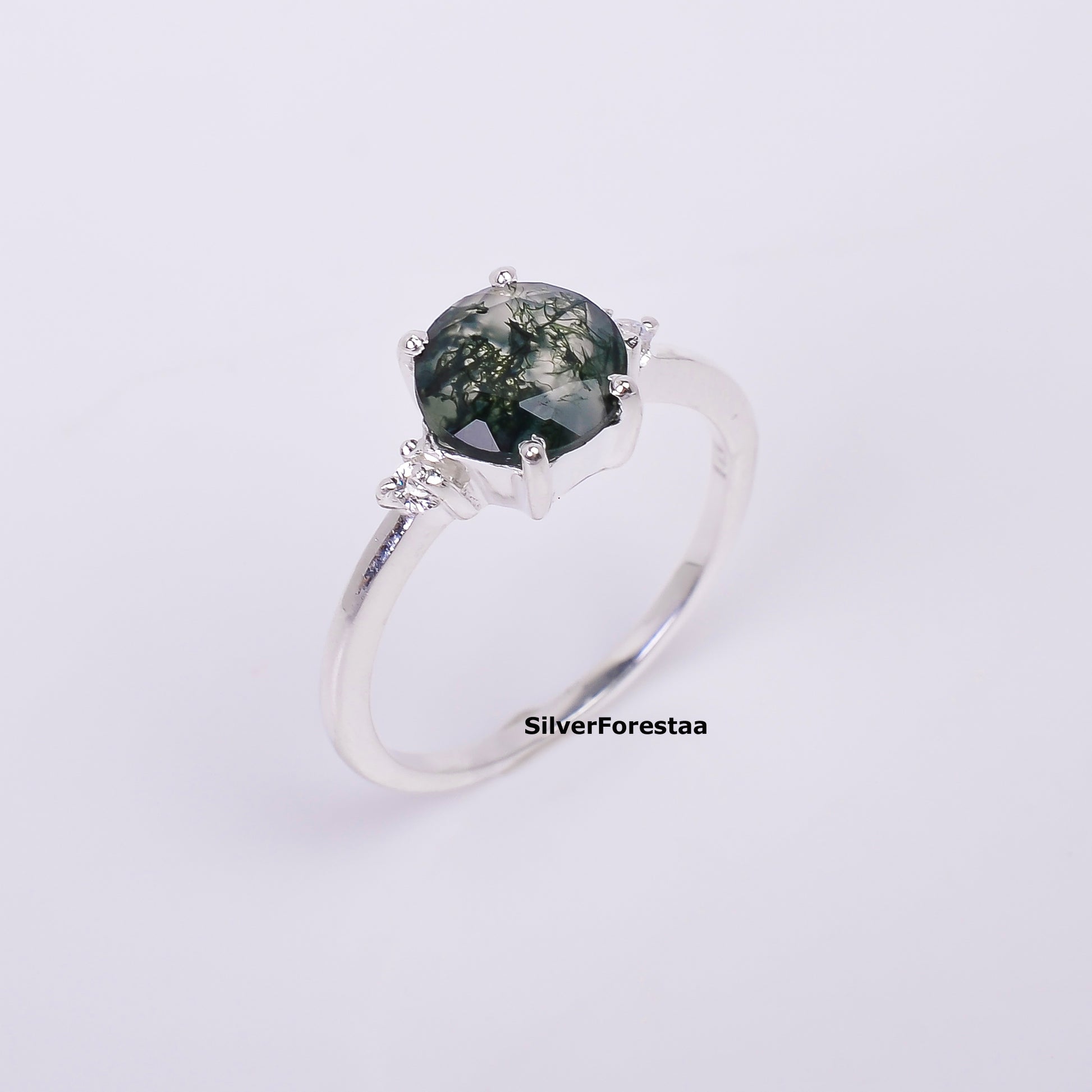 Round Cut Moss Agate Ring | Handmade Jewelry I SilverForestaa