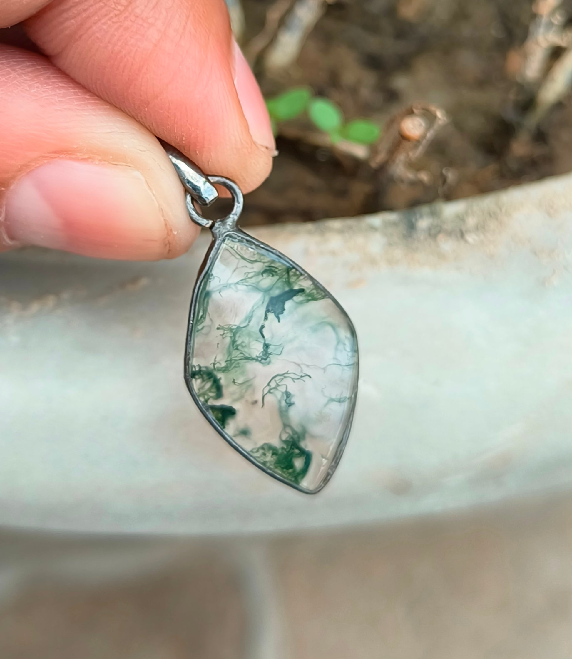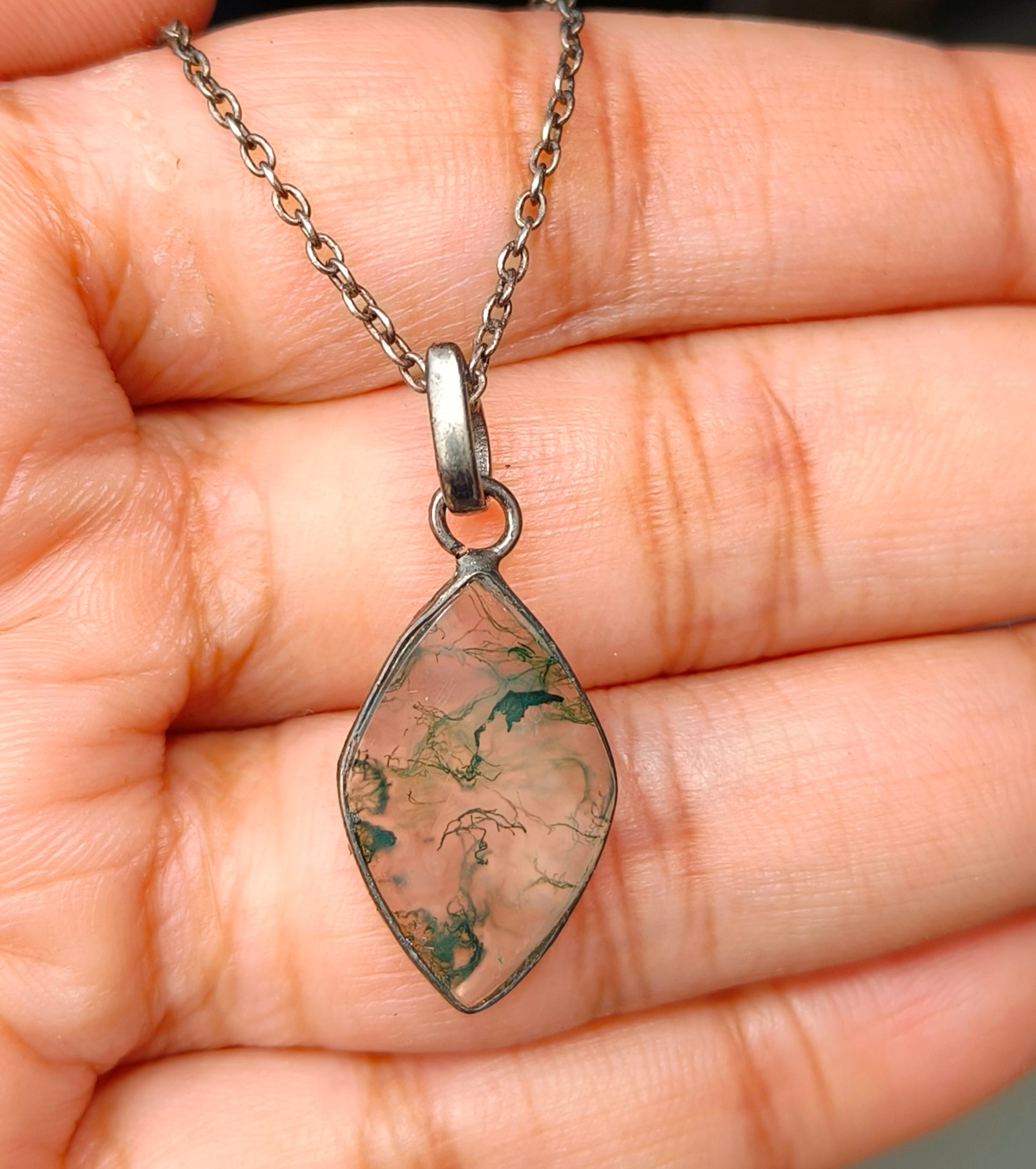 Moss Agate Pendant, 925 Sterling Silver Moss Agate Necklace, Moss Agate Silver Necklace, Moss Agate Jewelry, Handmade Necklace, 925 Sterling Silver Jewelry.