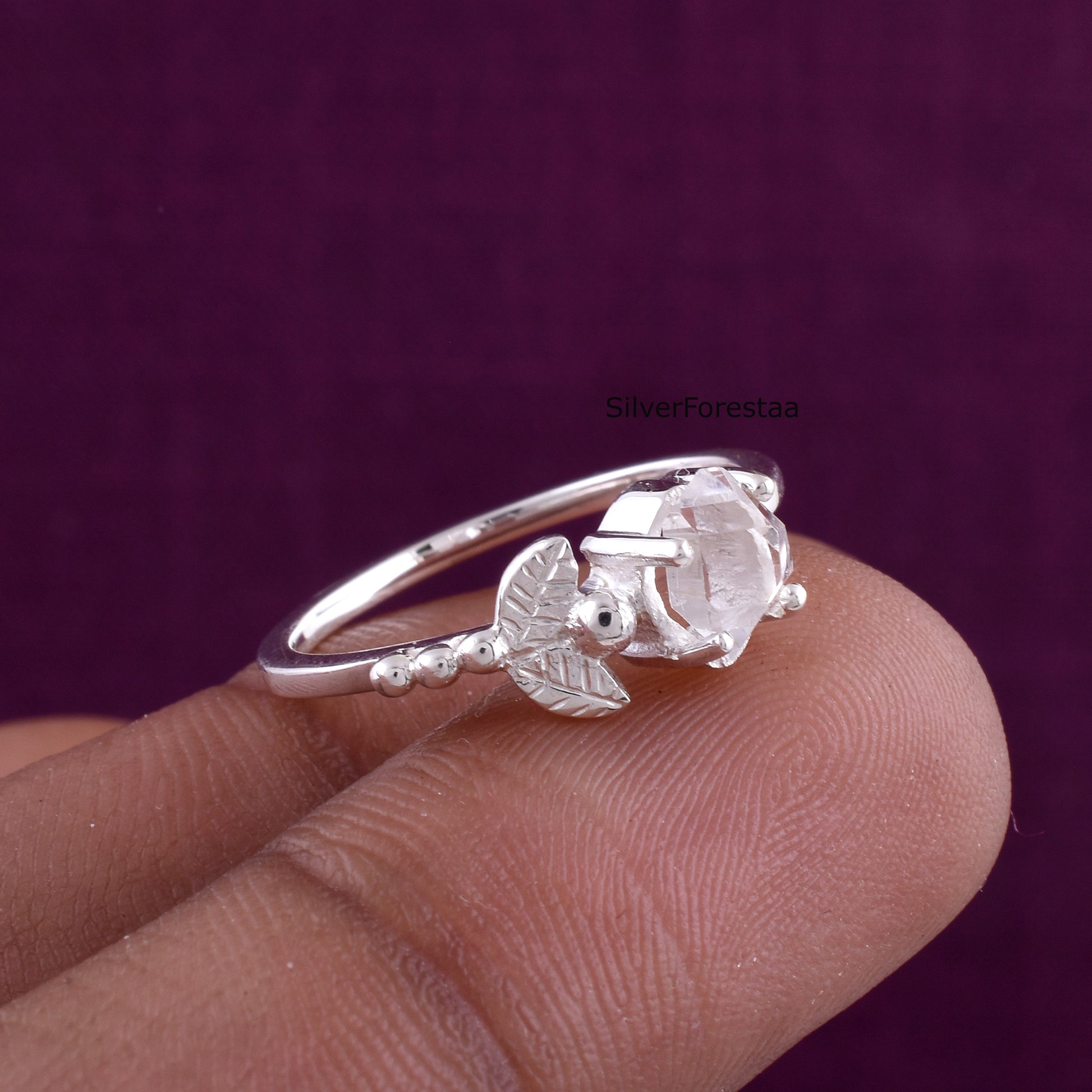 Unique Dainty Herkimer Diamond Ring - 925 Sterling Silver