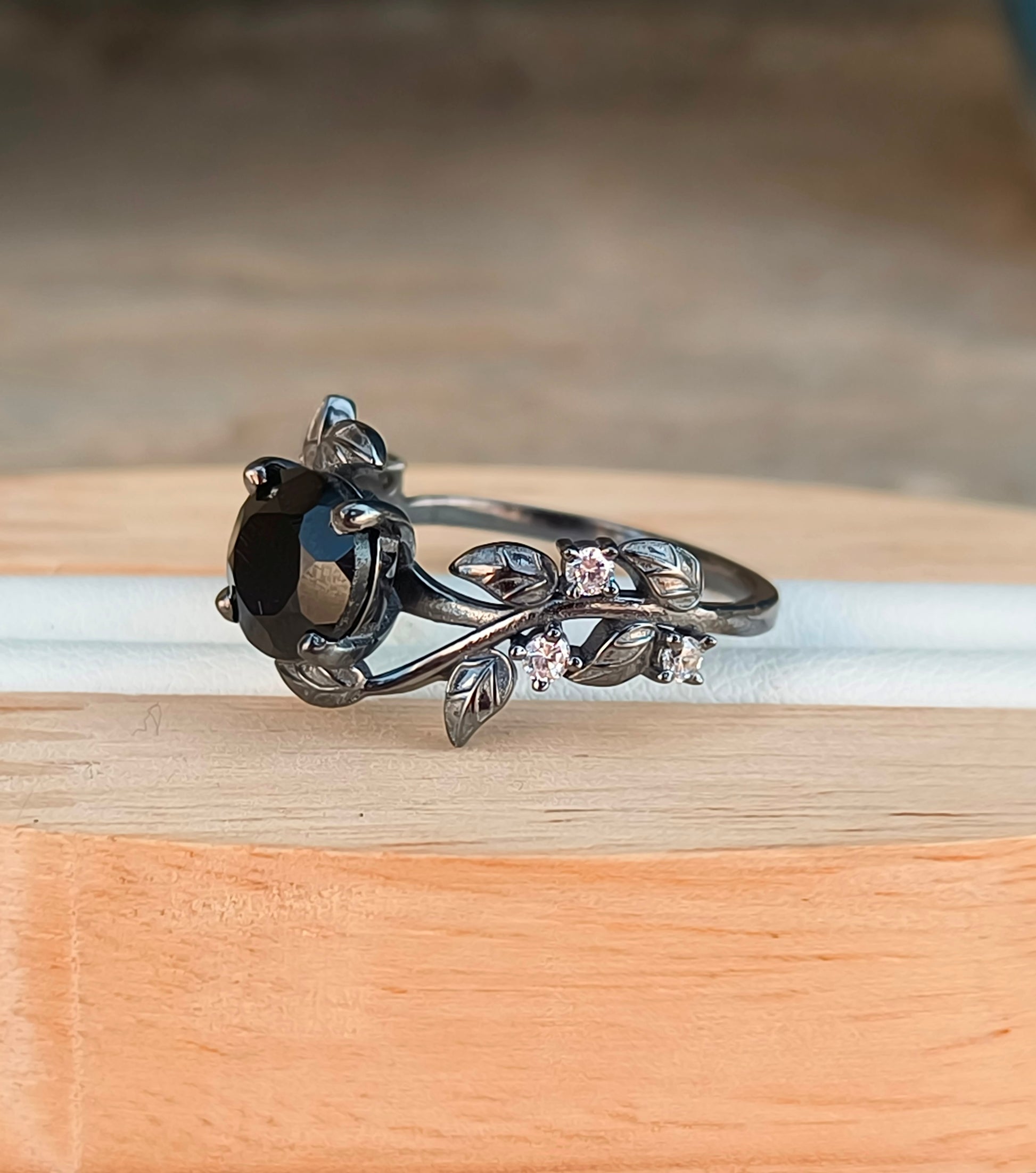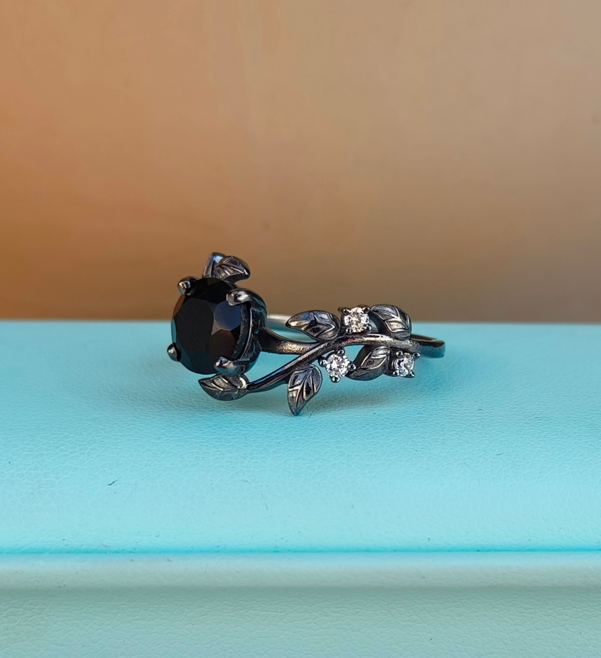 Witchy Leaf Black Onyx Ring - SilverForestaa
